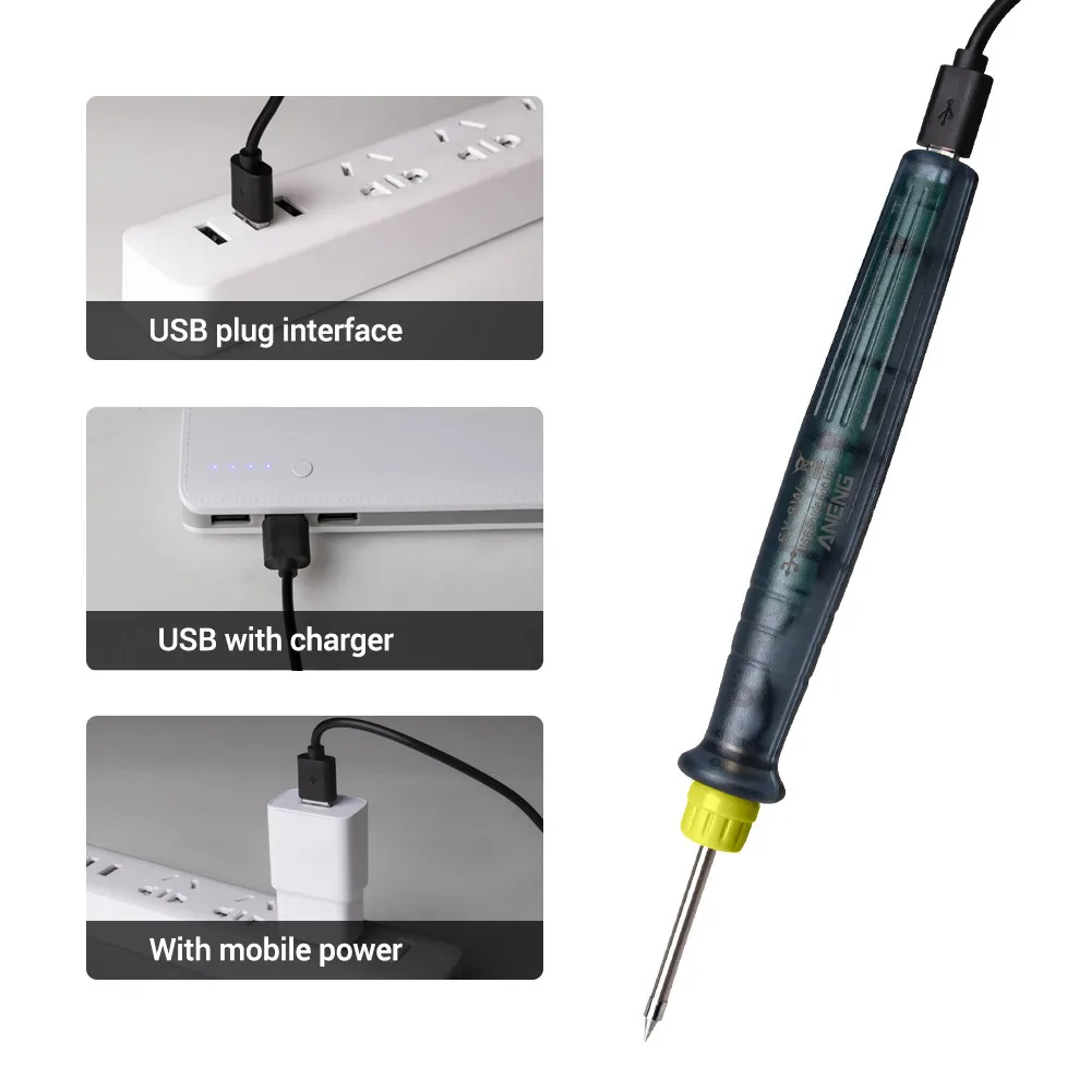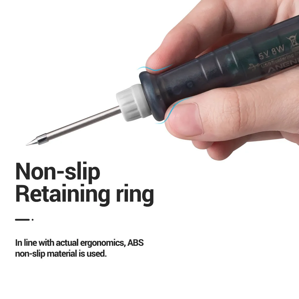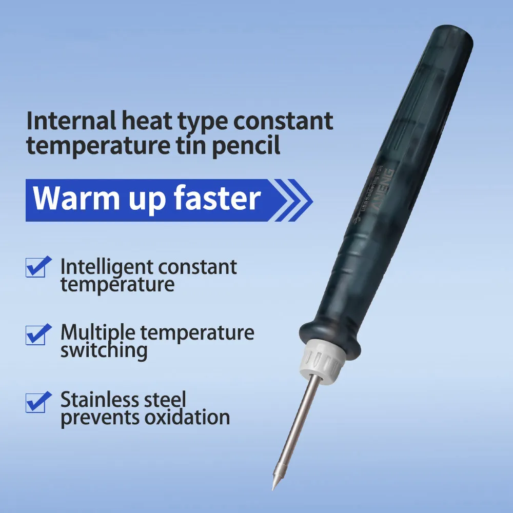 Дизайн наконечника для пайки из нержавеющей стали, защита от окисления, Быстрое нагревание и охлаждение; Оловянная ручка может быть размещена на прилагаемой полке паяльника, когда она не используется.