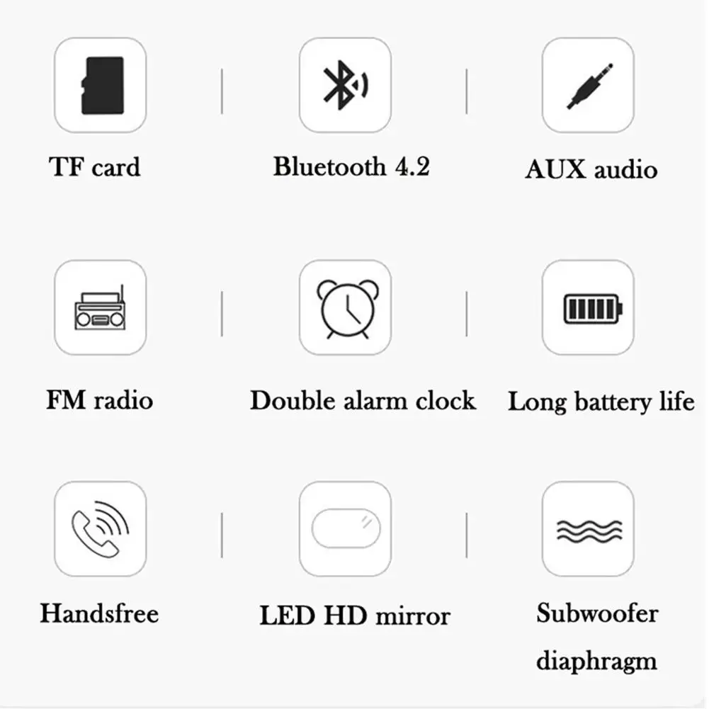 [Bluetooth Технология]: 3,5 мм аудио вход/выход ", с передовым оборудованием Технология, Динамик совместима со всеми устройствами Bluetooth с высокой мощностью Динамик отличным стереозвуком и мощным басом, не только динамик, но и будильник, радио1 * Руководство пользователя на китайском языке