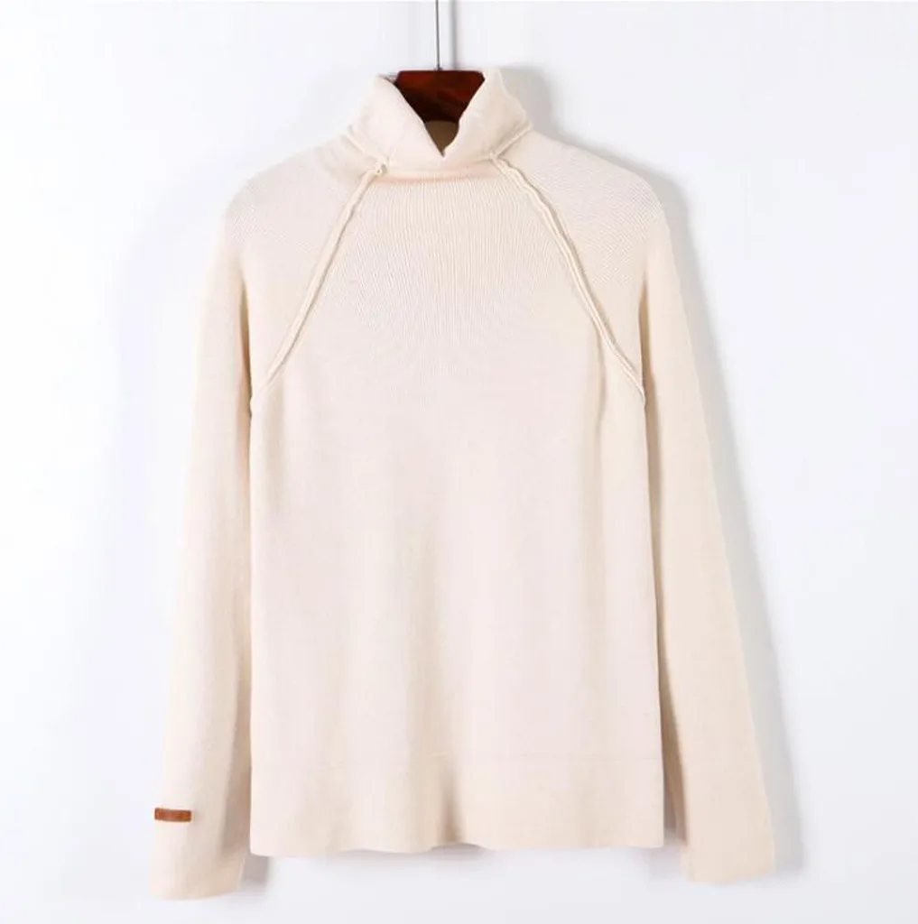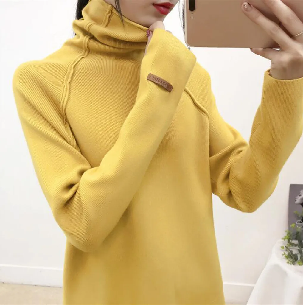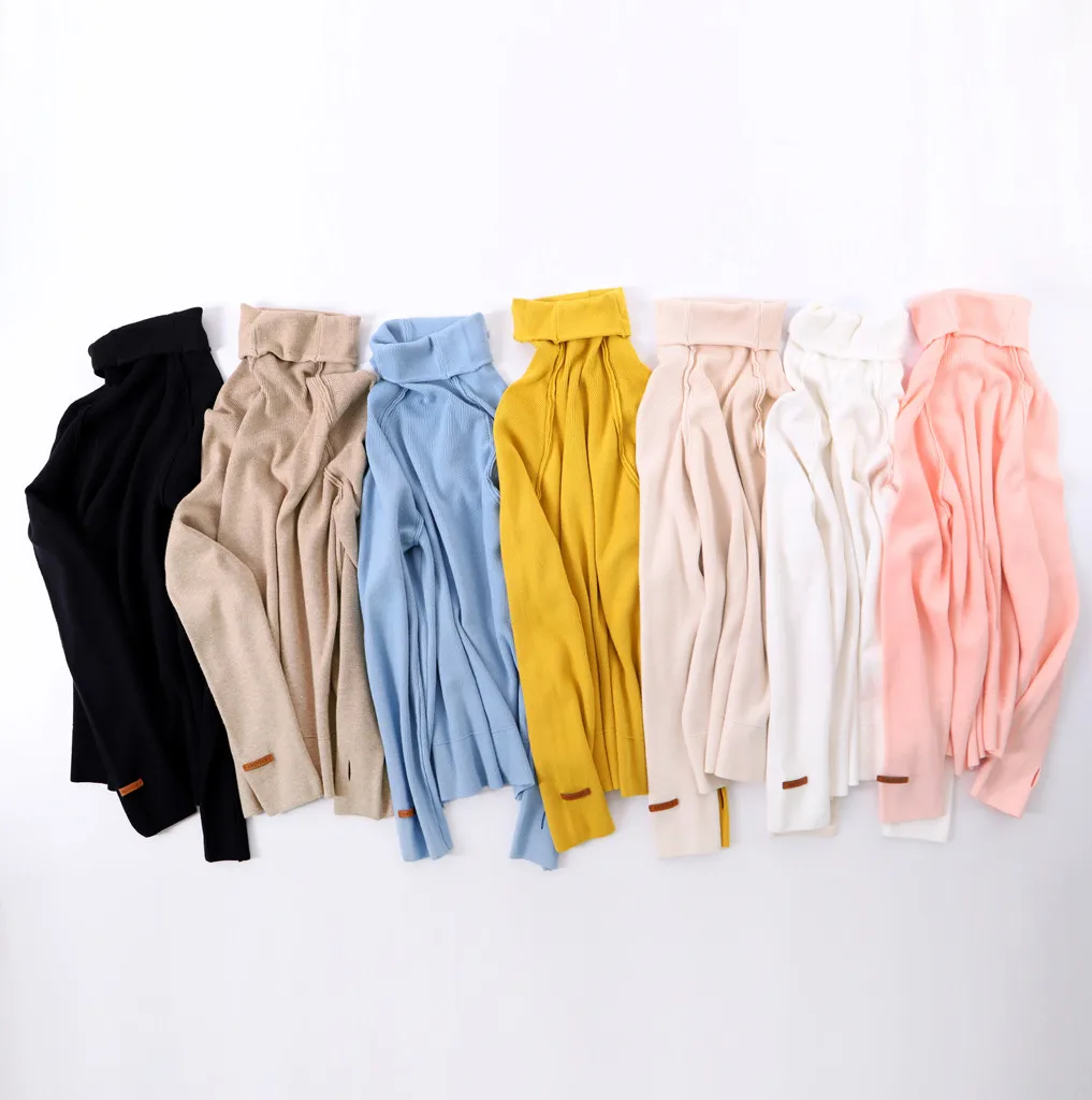 Модный женский однотонный пуловер с высоким воротником, повседневный топ с длинными рукавами, толстовка