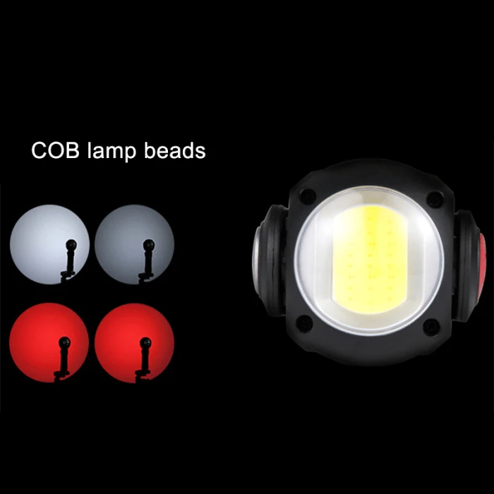 3.Двойной переключатель 7 режимов-Белый переключатель контролирует лампу T6 (сильный светильник-слабый светильник-вспышка), красный переключатель управления COB лампа шарик (белый светильник, сильный светильник-белый светильник, слабый светильник-красный светильник, сильный светильник-красный светильник)