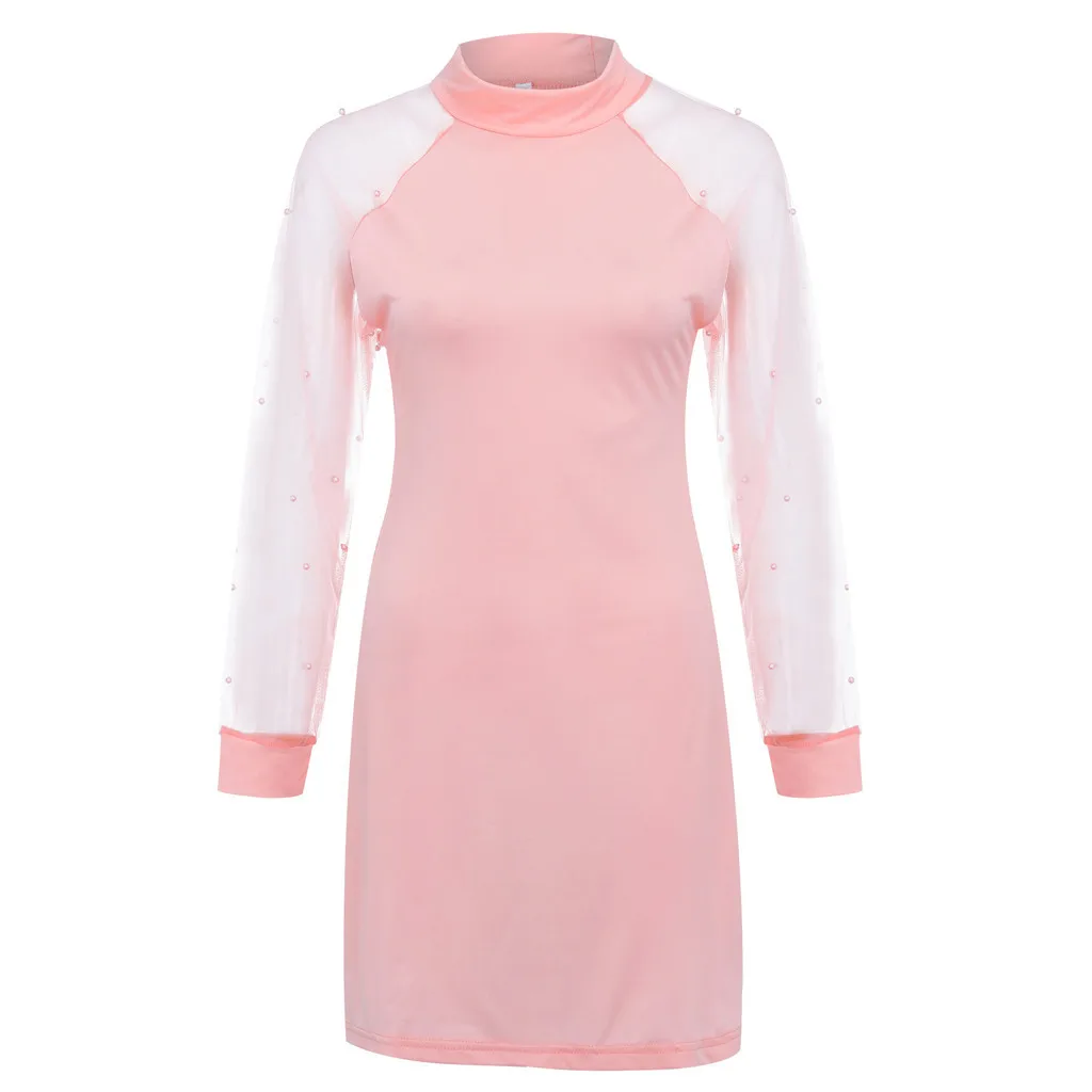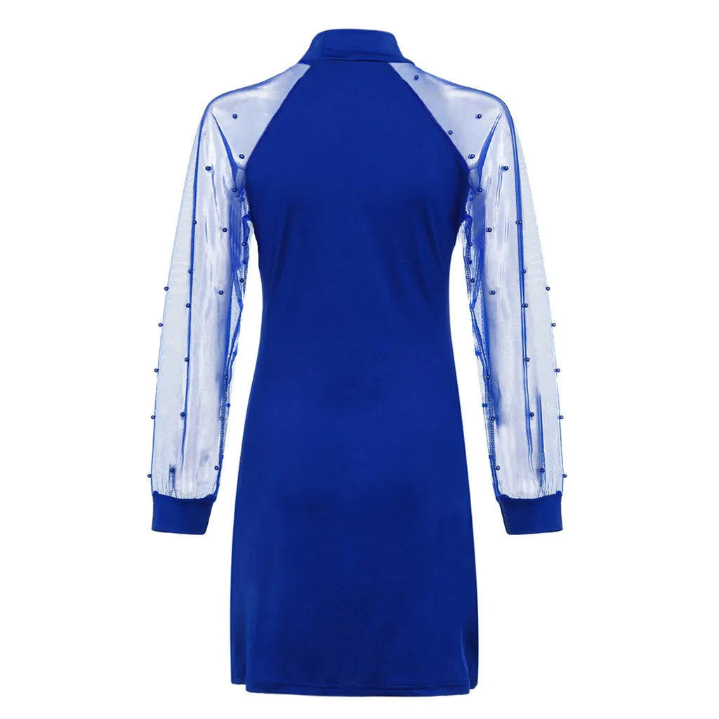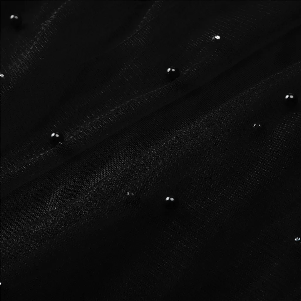 Женские жемчужные Бисероплетение Сетчатое платье с длинным рукавом трапециевидные вечерние мини-платья