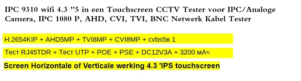 1. 4,3 дюймов full view ips HD разрешение экрана 800 × 480 2. Емкостный сенсорный или кнопки с виртуальной мышью, плюс дополнительная работа (эксклюзивный) 3. Скорость обнаружения ip-версии более быстрая и точная 4. Сервер ONVIF может использоваться в качестве сети камеры ONVIF для использования, его можно использовать для тестирования видеорегистратора. (Без учета) 5. Поддержка сети изображения камеры высокой четкости 400 Вт 6. Встроенная Функция беспроводного wifi 7. Поддержка сети управления PTZ, Жесты управления pan 8. CVBS аналоговый видео-дисплей, Управление PTZ, масштабирование изображения, фотографии, воспроизведение видео