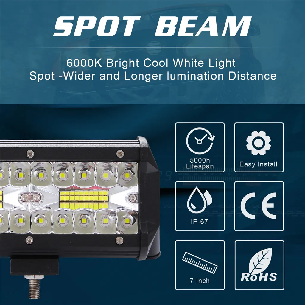 1x7 дюймов 3-рядная светодиодный рабочий светильник бар