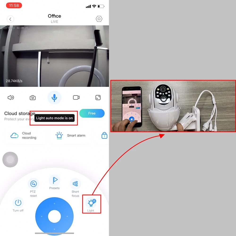 Есть функция интеллектуального прожектора, вы можете управлять им с помощью приложения.