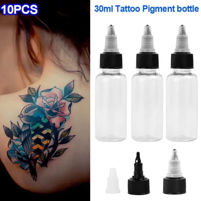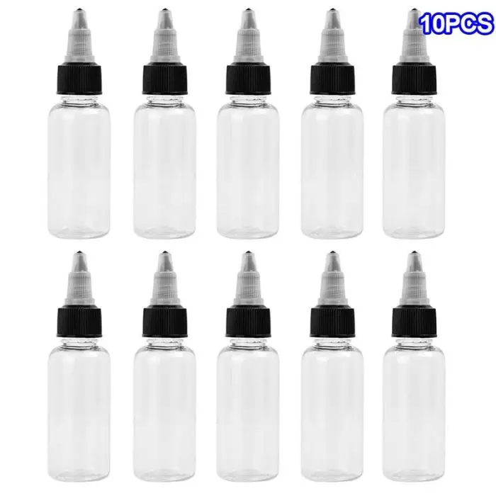 Новая Горячая 10 шт 30 мл тату чернила бутылка с пигментом пластиковая прозрачная крышка многоразовая пустая бутылка с Закруткой принадлежности SMR88