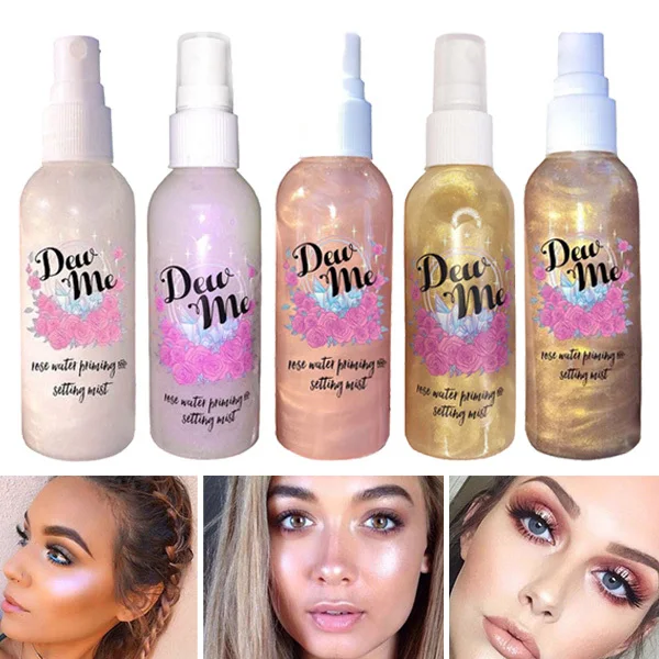 Новый горячий увлажняющий спрей для лица основа для макияжа Розовая вода блестящая грунтовка Освежающая женская косметика для лица SMR88