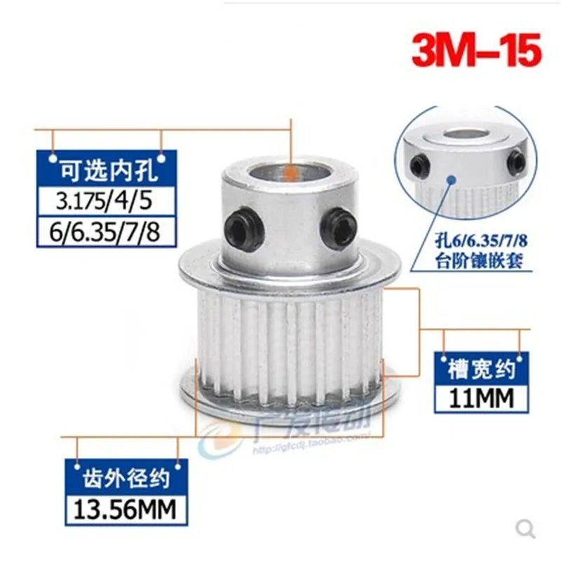 Название продукта Шкив ГРМ Модель 3 м Тип Количество зубов 15T Шаг зубов 3 мм Внутренний диаметр 3,175/4/5/6/6.35/iPhone 7 Plus/8 мм Ширина ремня 11 мм Общая высота 22 мм Винт 2xM4 Материал Алюминиевый сплав Посылка 1 шт./лотПримечание: