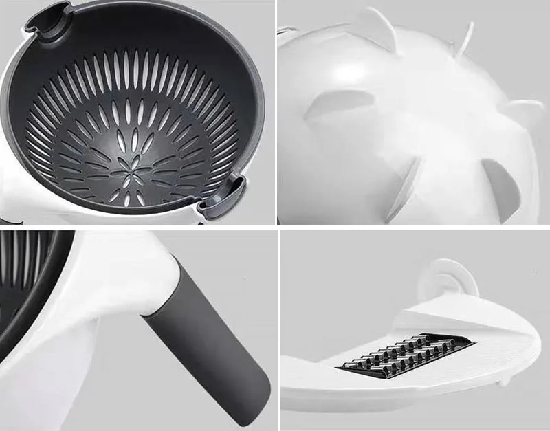 Кухонная помощь: резка и чистка, простая и быстрая, вращающаяся пряжка, Автоматический угол вращения, Асфальтовая корзина всегда стабильна, легко моется за овощи и сливается.