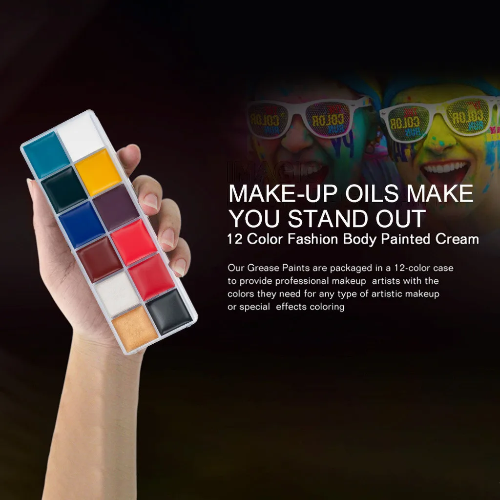 12 цветов, макияж для Хэллоуина, окрашенные лица, картина маслом, набор для макияжа