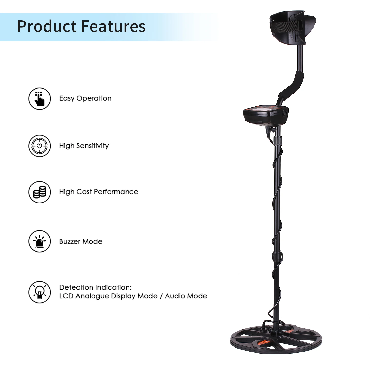 Регулируемая высота металлоискателя-регулировка длины детектора для комфортного использования. Легко регулировать и управлять вашим детектор с комфортом.