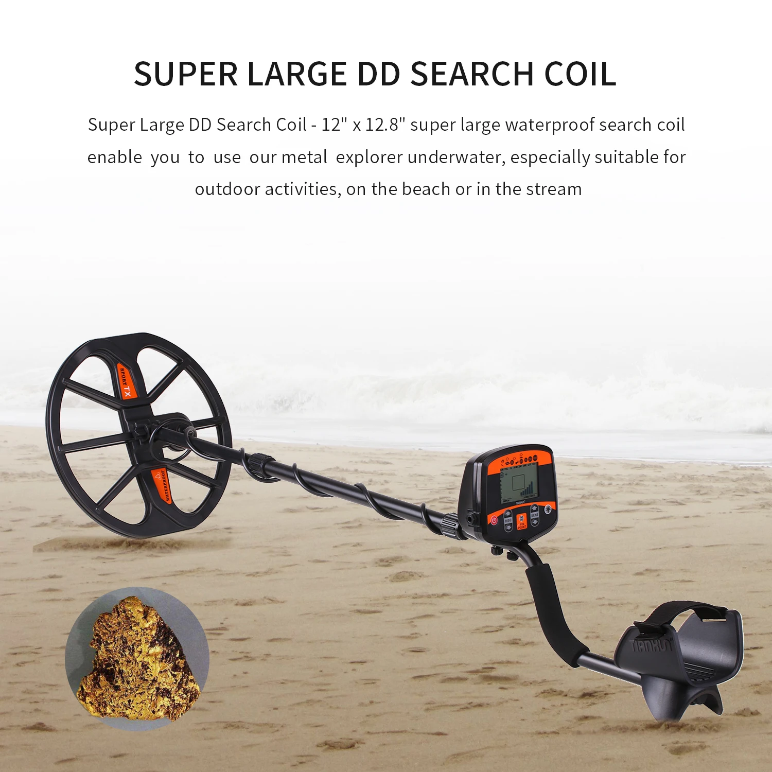 Супер большой DD поисковая катушка-12 "x 12,9" супер большой водонепроницаемый поисковая катушка позволяют использовать наши металлический проводник под водой, особенно подходит во время занятий спортом на открытом воздухе, на пляже или в прямому эфиру.