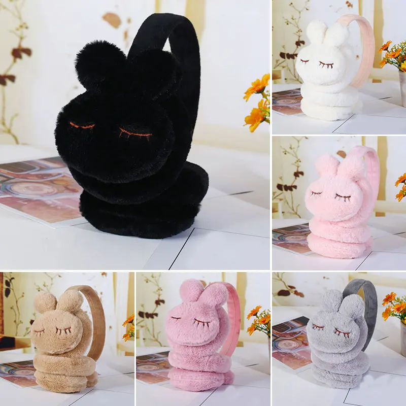 Милые теплые наушники с объемным Кроликом, зимние детские мягкие плюшевые теплые наушники