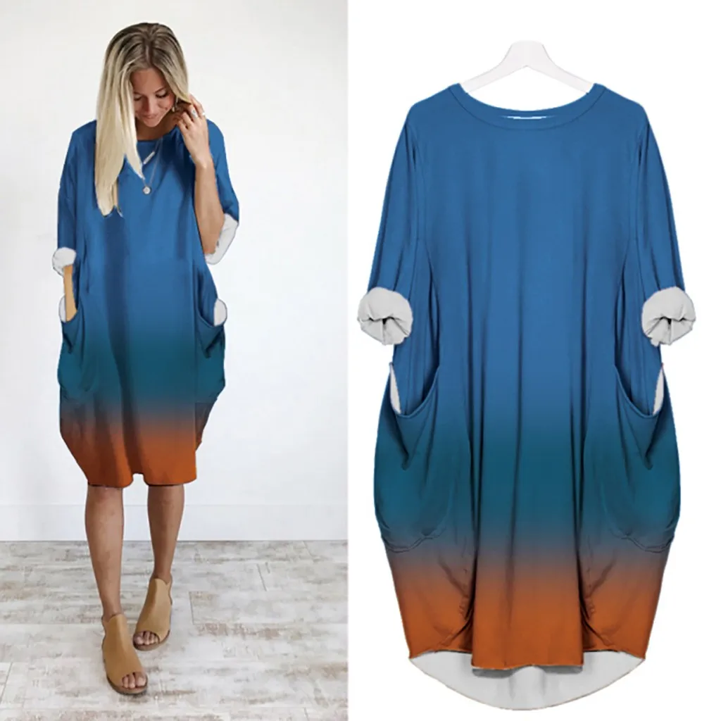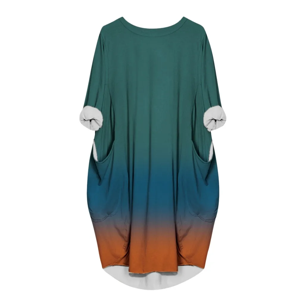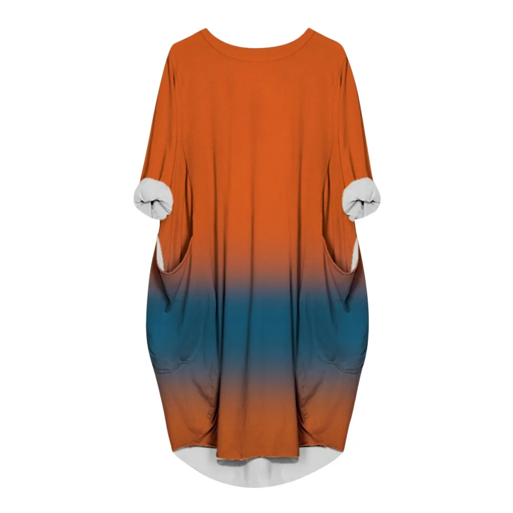 Новинка 2020, весенне-осеннее Повседневное платье для женщин размера плюс, свободное платье с круглым вырезом и длинным карманом, рождественское платье