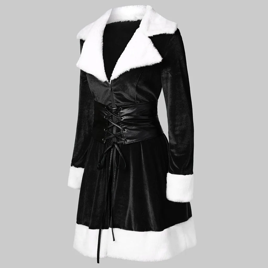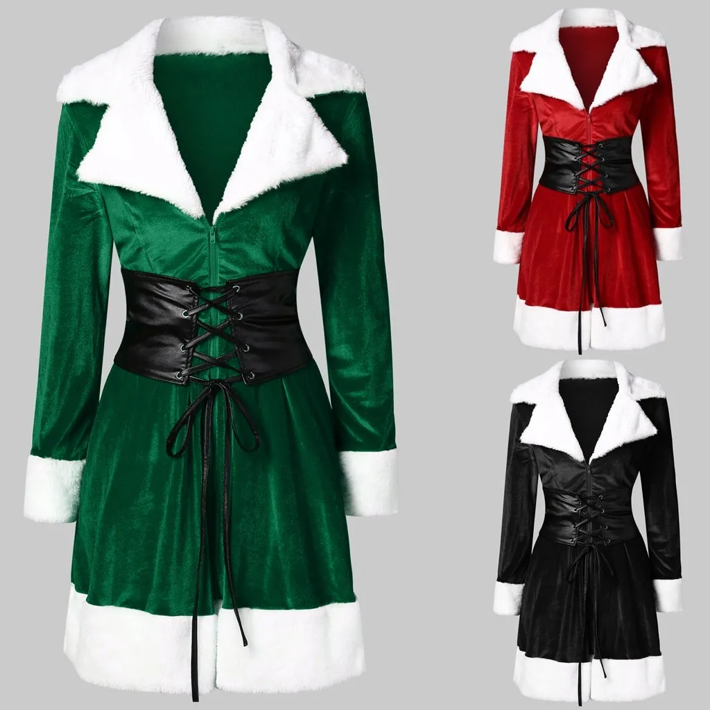 Женское бархатное мини-платье, модное рождественское платье на молнии с длинным рукавом и отложным воротником, одежда с поясом, 2019