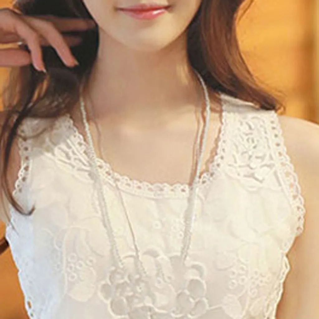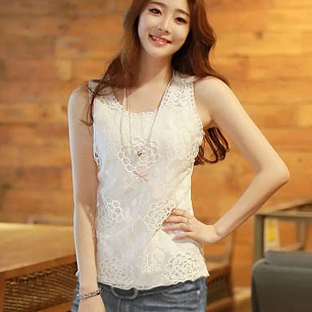 Особенности: Повседневный; Без рукавов; Круглый вырез; Кружевные топы с цветочным рисунком; Женские топы; Сезон осень-весна.