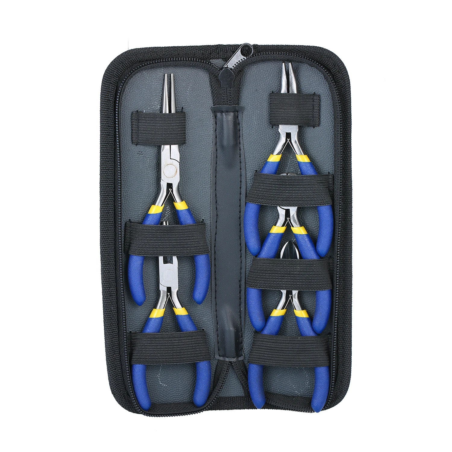 Этот набор плоскогубцев включает в себя 5 шт. плоскогубцев: плоскогубцы с иголками, плоскогубцы с длинными носками, плоскогубцы с изогнутыми носками, плоскогубцы с концевой резкой, плоскогубцы с диагональной резкой.