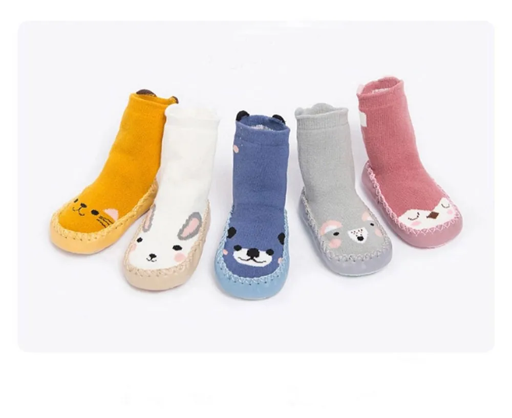 Детская одежда для маленьких мальчиков и девочек С рисунком из мультфильма Нескользящие вязаные теплые носки с животными