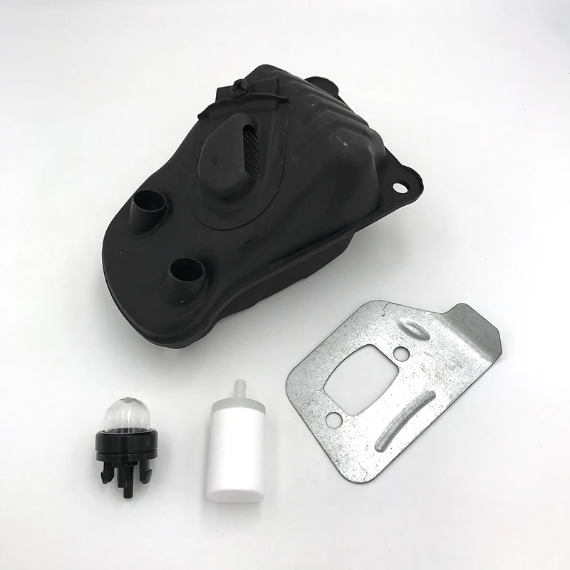 Глушитель глушитель дефлектор пластина комплект для Husqvarna 550 XP 545 550XP бензопила праймер лампы топливный фильтр запасные части 523052602 Подходит для Husqvarna 545,550XP цепная пила Замените часть # для 523052602 Вы получите: 1 x глушитель, 1 x дефлектор, 1 x топливный фильтр, 1 x праймер.