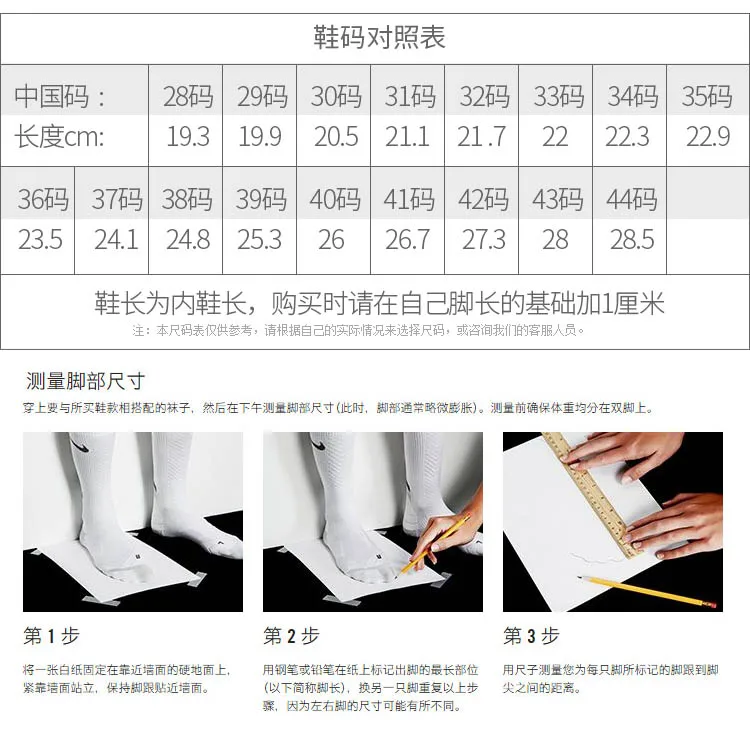 Примечание: Из-за ручного измерения допускается погрешность в 0-2 см, спасибо! На нашей обуви указан китайский размер обуви или соответствующая длина стопы. Например: CN размер 44 (27 см). 27 см = длина стопы/27 см длина стельки длина подошвы.
