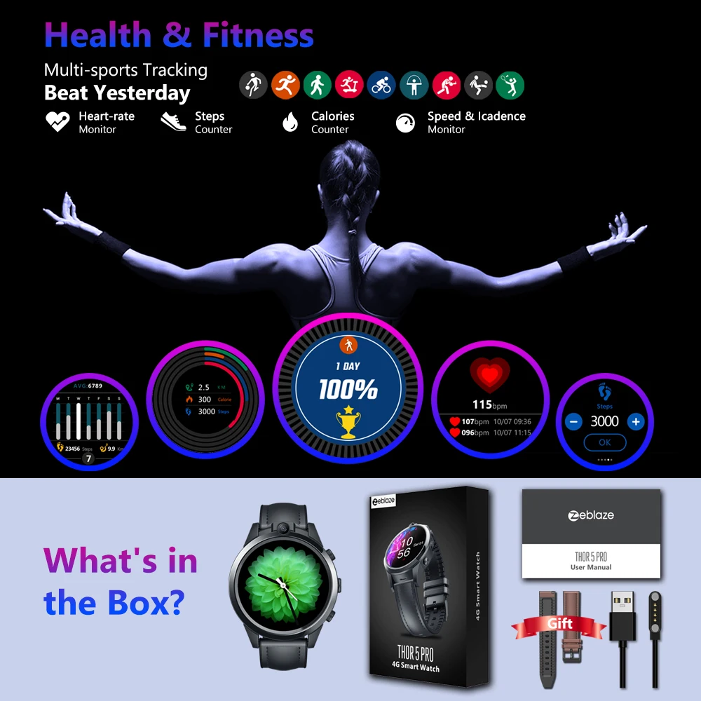 Функции: Сеть 4G (глобальные полосы), GPS/ГЛОНАСС, Google Play, голосовой поиск, офлайн музыка, WiFi, погода, часы лица для любого случая, приложения, часы лица и уведомления, телефонная книга, будильник, BT, браузер, календарь, камера, электронная книга, MP3, MP4, монитор сердечного ритма, шагомер, Напоминание о звонках, удаленная музыка, уведомление о сообщениях, удаленная камера, ответ на вызов, вызов вызова.