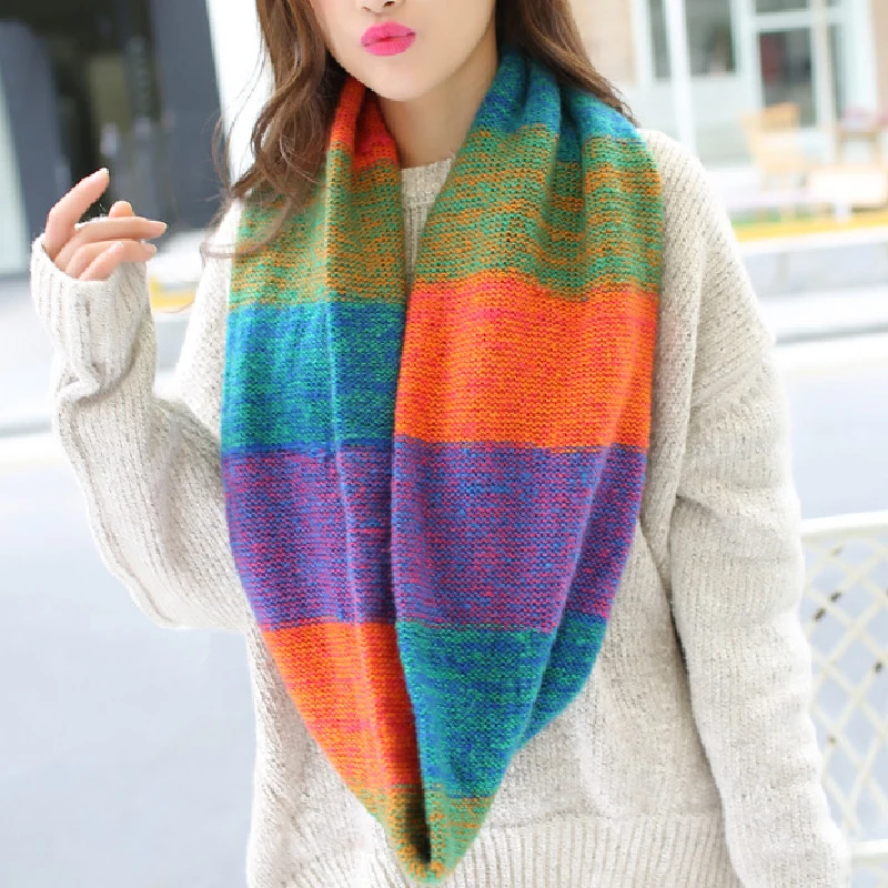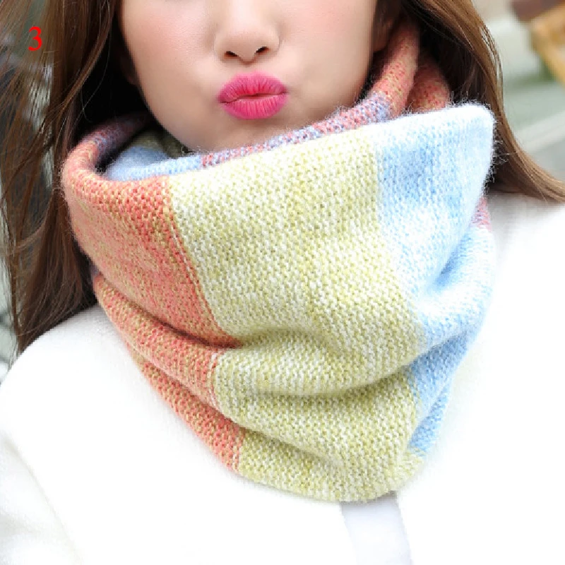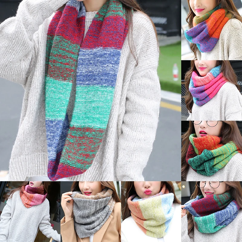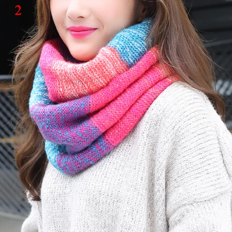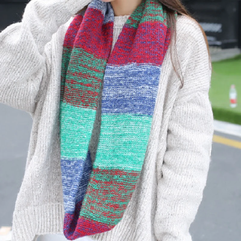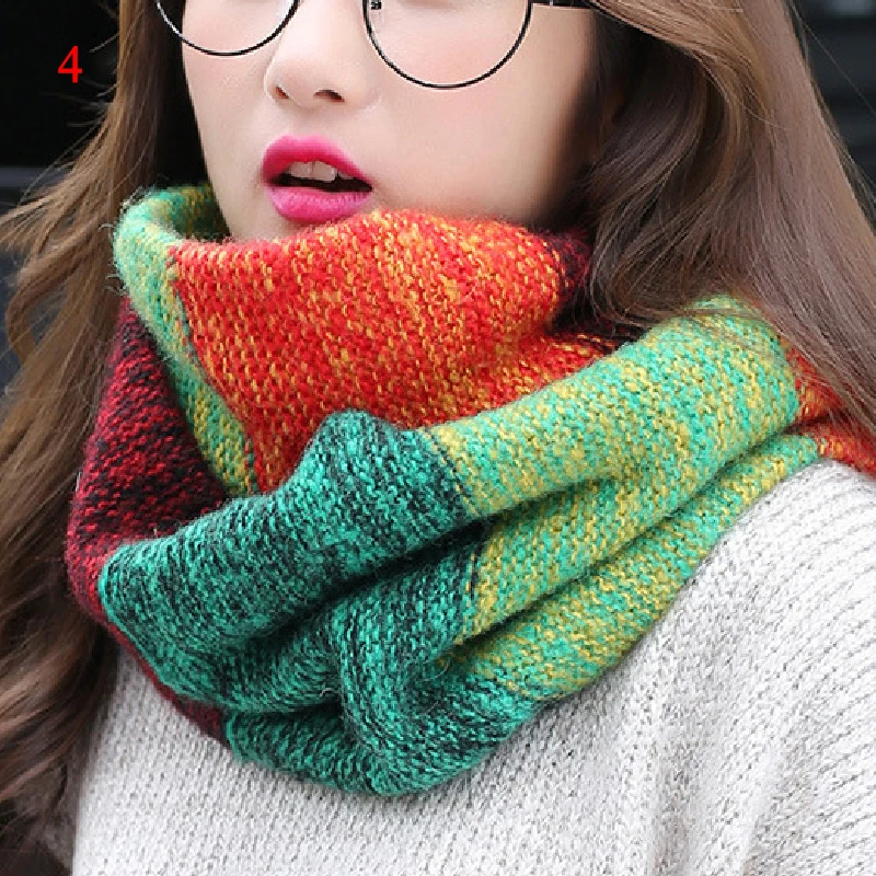 Женский Зимний вязаный теплый шарф-хомут, модный цветной шарф-хомут