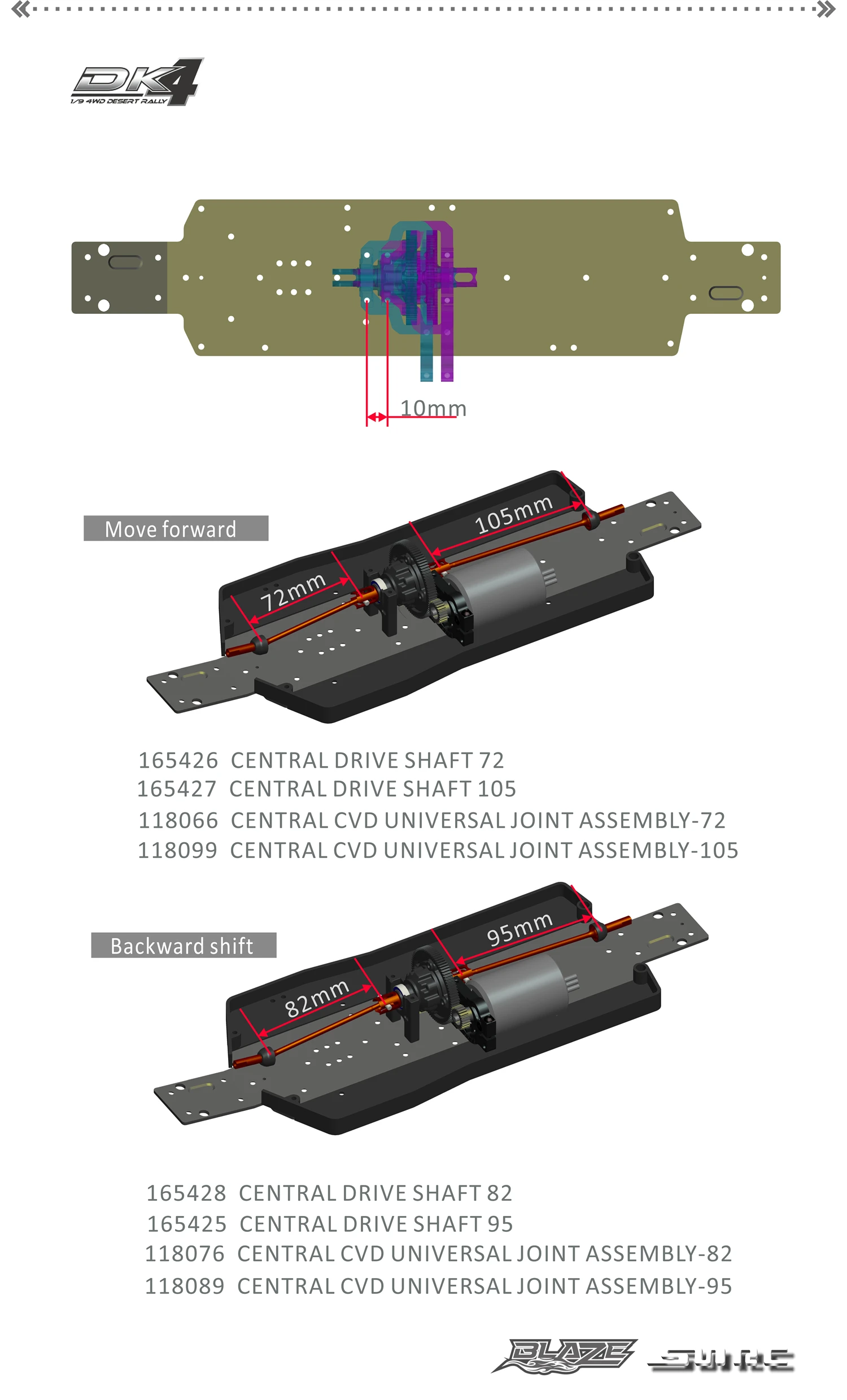 DK4 не имеет длинных верхних палуб поперек от передней к задней. Но, его передние, центральные и задние верхние палубы отделены от регулировки гибкого трубопровода шасси. Он работает только в передней, Центральной и задней сборках diff.