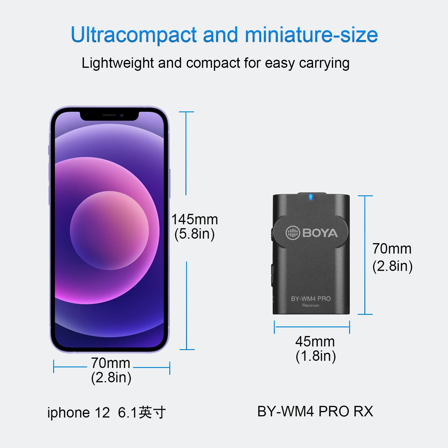 Идеально подходит для YouTubers, vloggers, мобильных журналистов для iPad, iPhone,iPod touch. Двухканальный и plug-and-play дизайн, он может работать с двумя передатчиками с корпусом (TX4 Pro), независимо от внутренних и внешних условий.