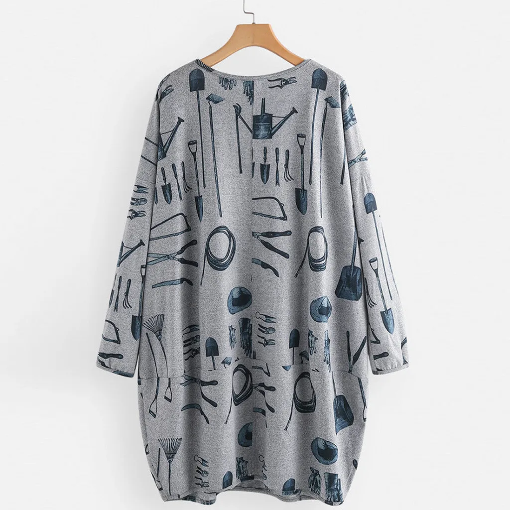 Новинка 2020, хлопковое Повседневное платье, женское мини-платье с длинными рукавами и круглым вырезом, с карманами и принтом