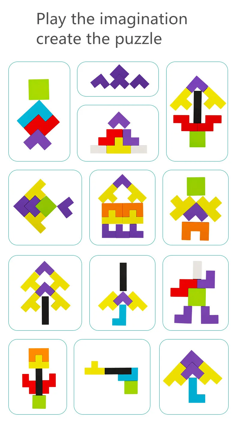 - Название продукта: красочная креативная развивающая игрушка-Танграм, пазлы, кубики Тетрис, деревянные игрушки-паззлы для детей, детские строительные блоки, игровой подарок
