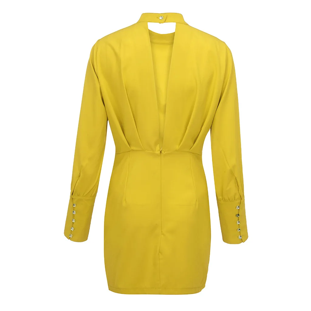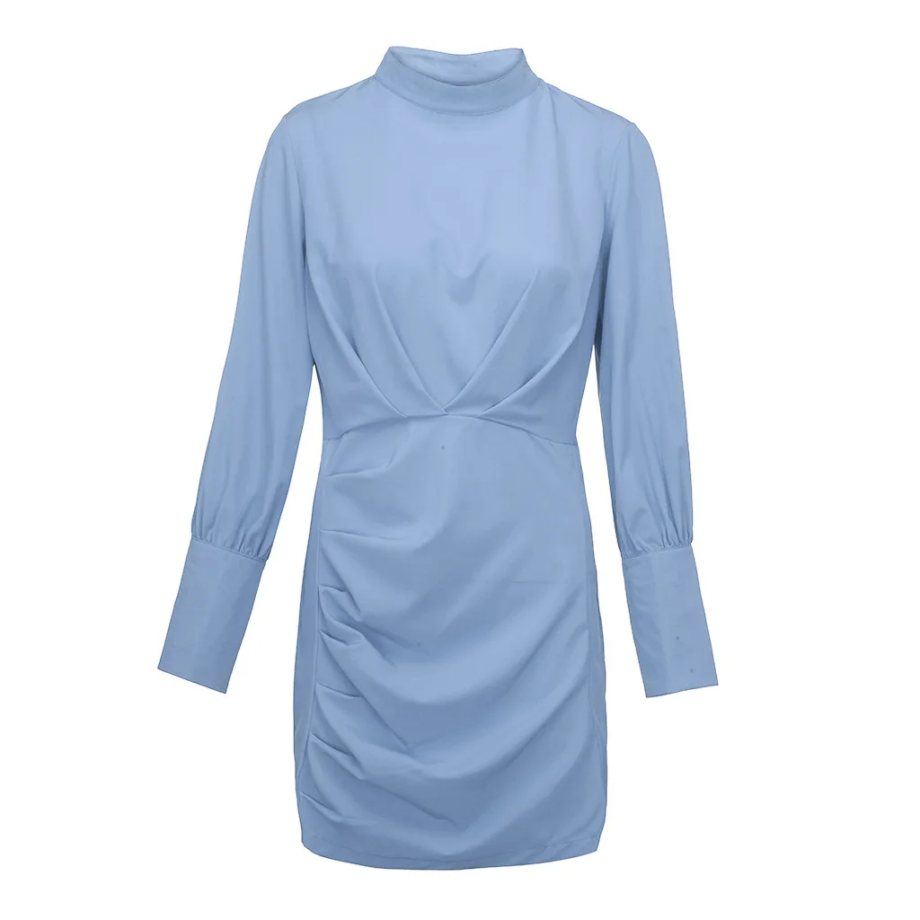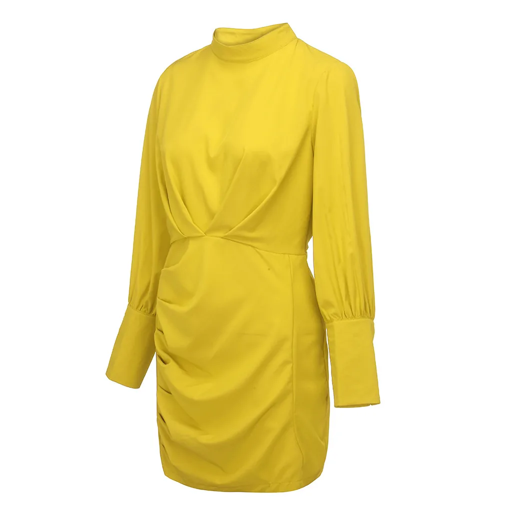 Модное женское сексуальное платье с круглым вырезом и длинным рукавом, однотонное платье с открытой спиной для ягодиц