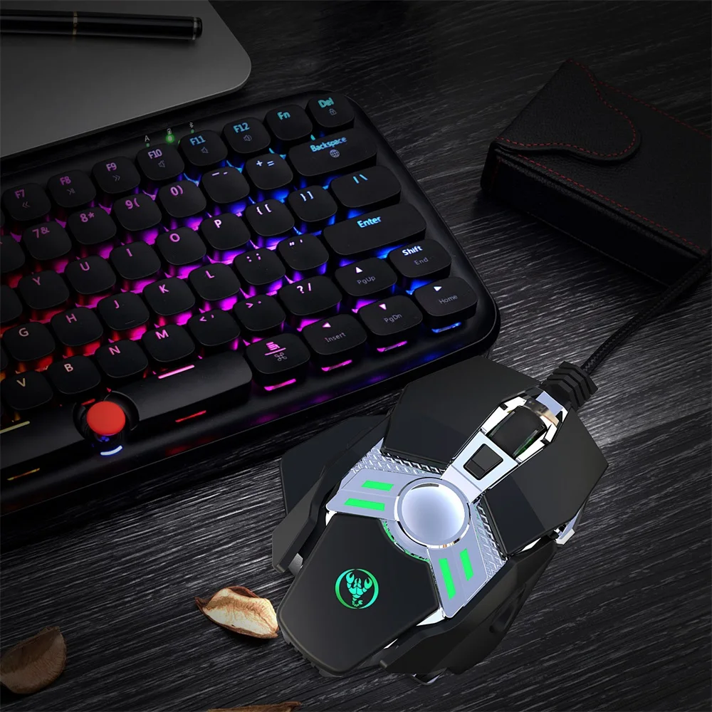 Проводная игровая мышь HXSJ J200 6400 DPI с семиклавишными настройками макропрограммирования мышь с четырьмя регулируемыми DPI RGB светильник