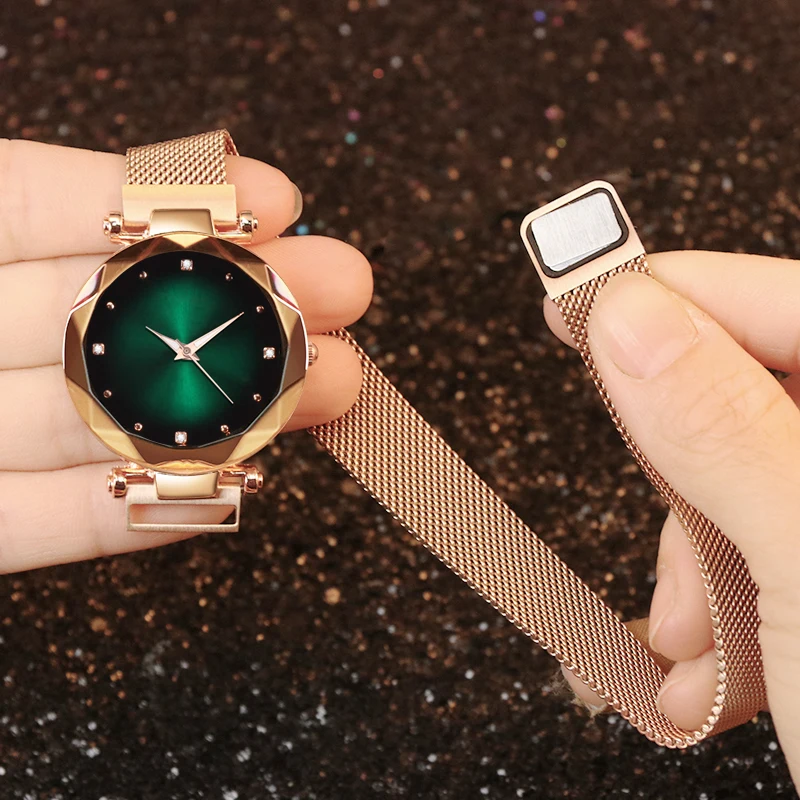 Новый магнитный ремешок решает проблему, что ваш ремешок слишком короткий или слишком длинный, чтобы носить неправильно. 21 см можно свободно регулировать. Ремешок крепкий, а всасывание сильное. Это лучший выбор для вашей моды. Тренд high end звёздное небо циферблат делает Вашу привлекательность Блум, роскошный и благородный, модный и популярный дизайн этого наручные часы идет от boardroom ужин вечерние с легкостью. Очень подходит в качестве подарка Особенности: Размеры и вес Длина ремешка: 21,8 см Ширина ремешка: 14 мм Диаметр циферблата: 33 мм Чехол Толщина: 10 мм Вес часов: 44,4 г Материал ремешка: нержавеющая сталь Материал: сплав