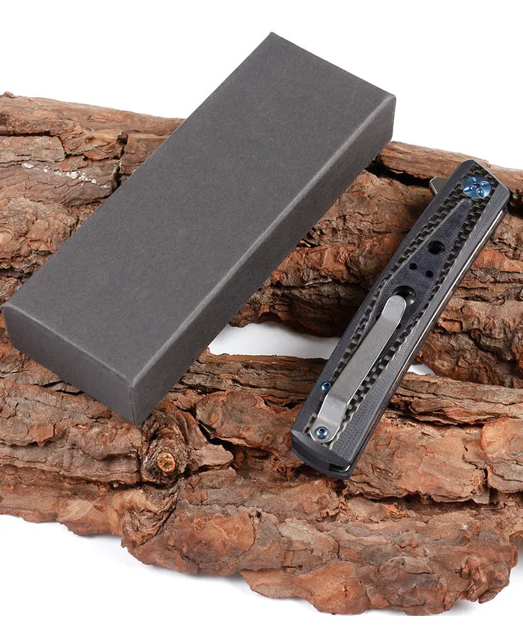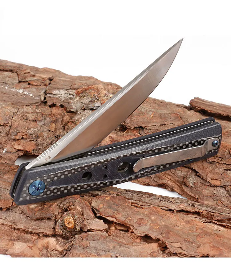 Тип: складной нож Общая длина: 23 см/9,06" Лезвие Длина: 10,5 см/4,13" Ручка Длина: 12,5 см/4,93" Ширина лезвия: 2 см/0,787" Лезвие Толщина: 0,38 см/0,15" Материал лезвия: сталь D2 Твердость лезвия: 58-60HRC Поверхность лезвия: сатин Материал ручки: углеродное волокно + G10 Вес ножа: 113 г/2,89 унций Структура: шариковый подшипник Другое: новая в бумажной коробке посылка.