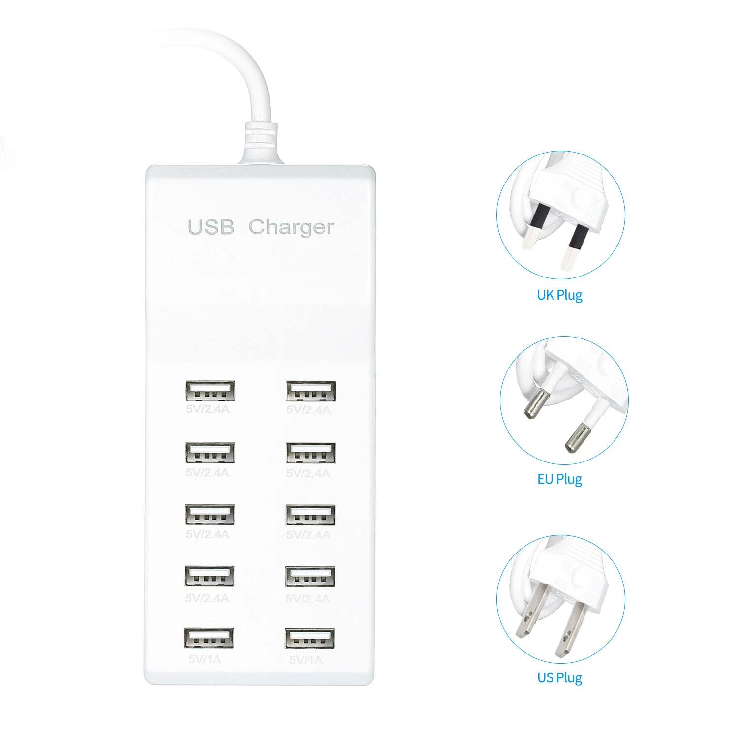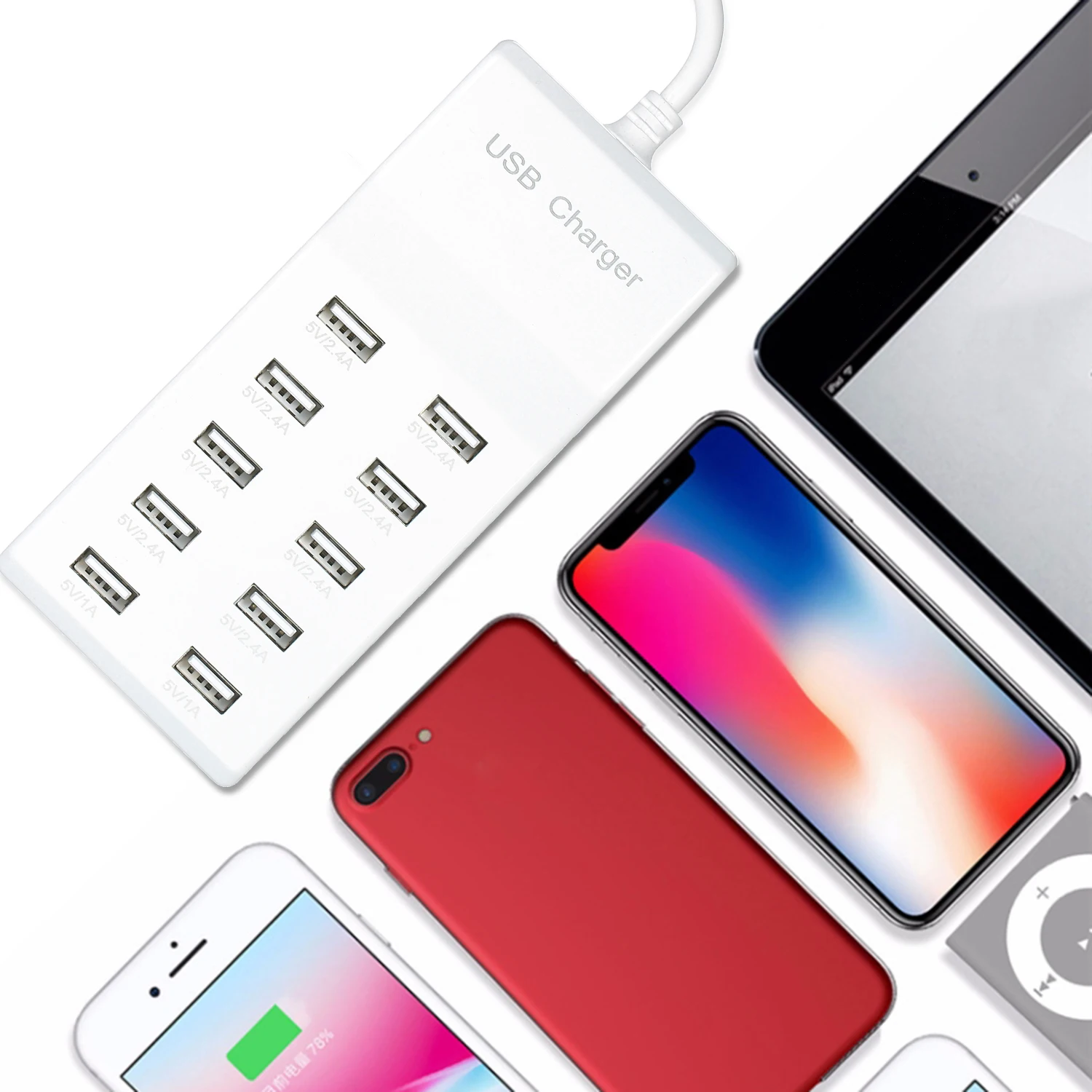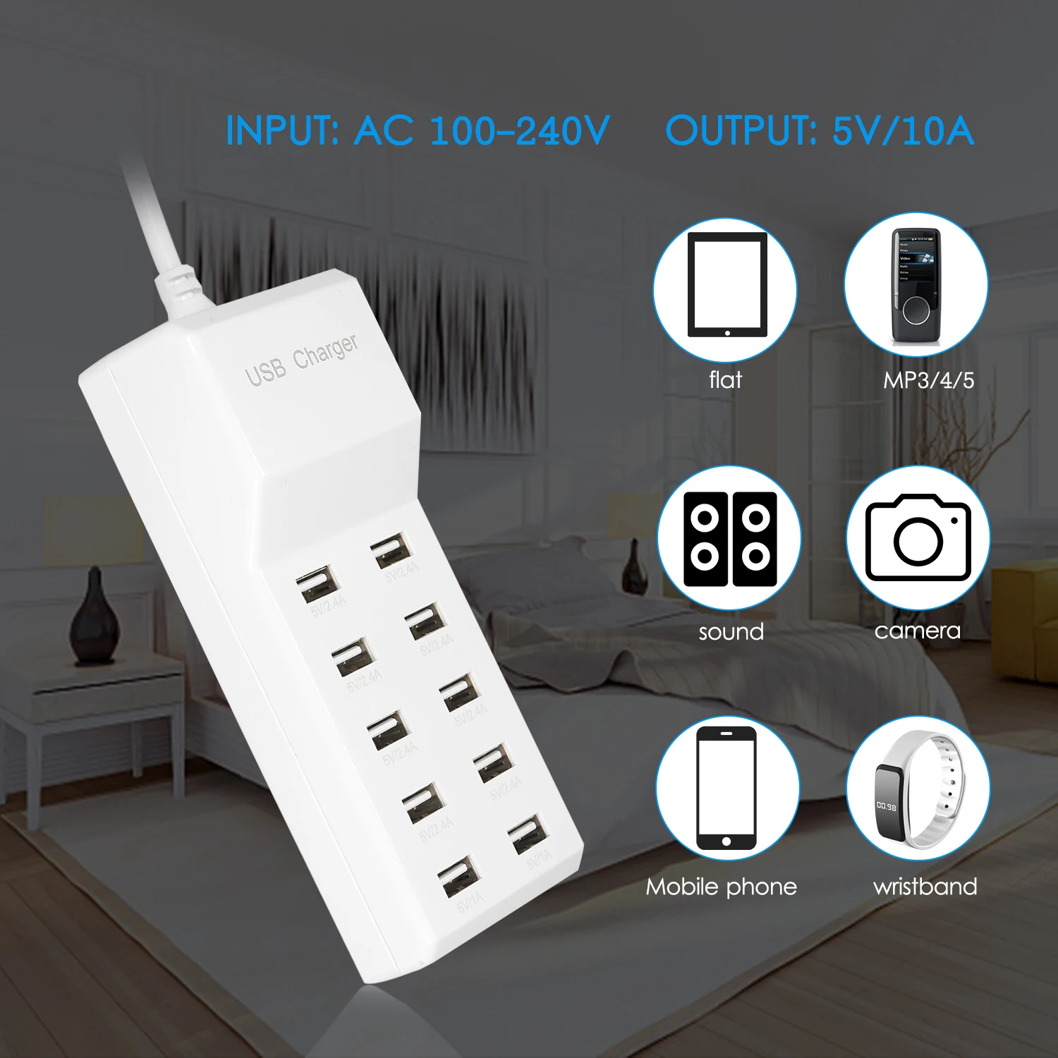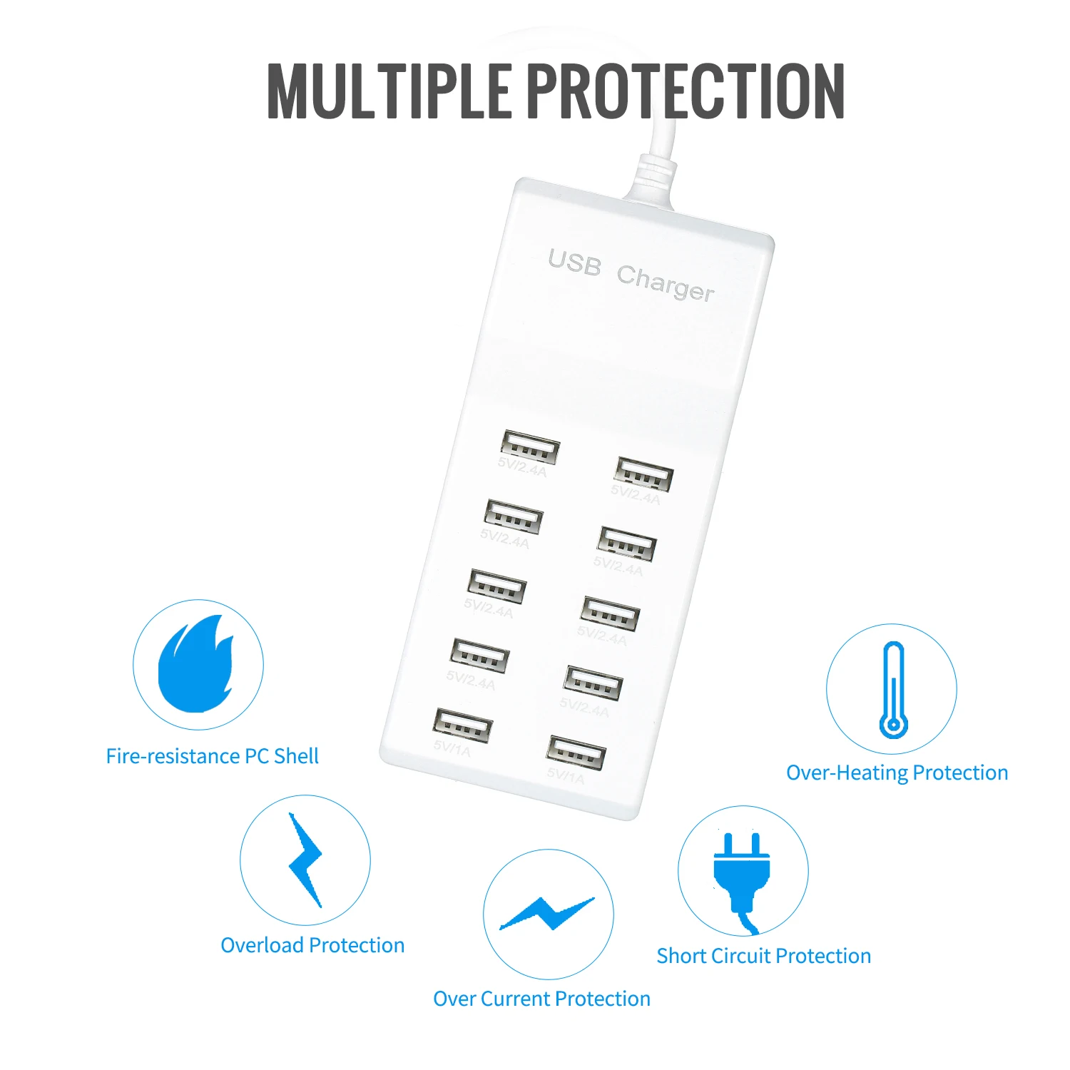 10 USB Порты и разъёмы интеллектуальная зарядка --- Смарт Порты и разъёмы технология обеспечивает максимальную Совместимость с Android, Apple и другие устройства, обеспечивая скорость зарядки до 10 ампер среди 10 Порты и разъёмы s или 2,4 ампер на Порты и разъёмы.
