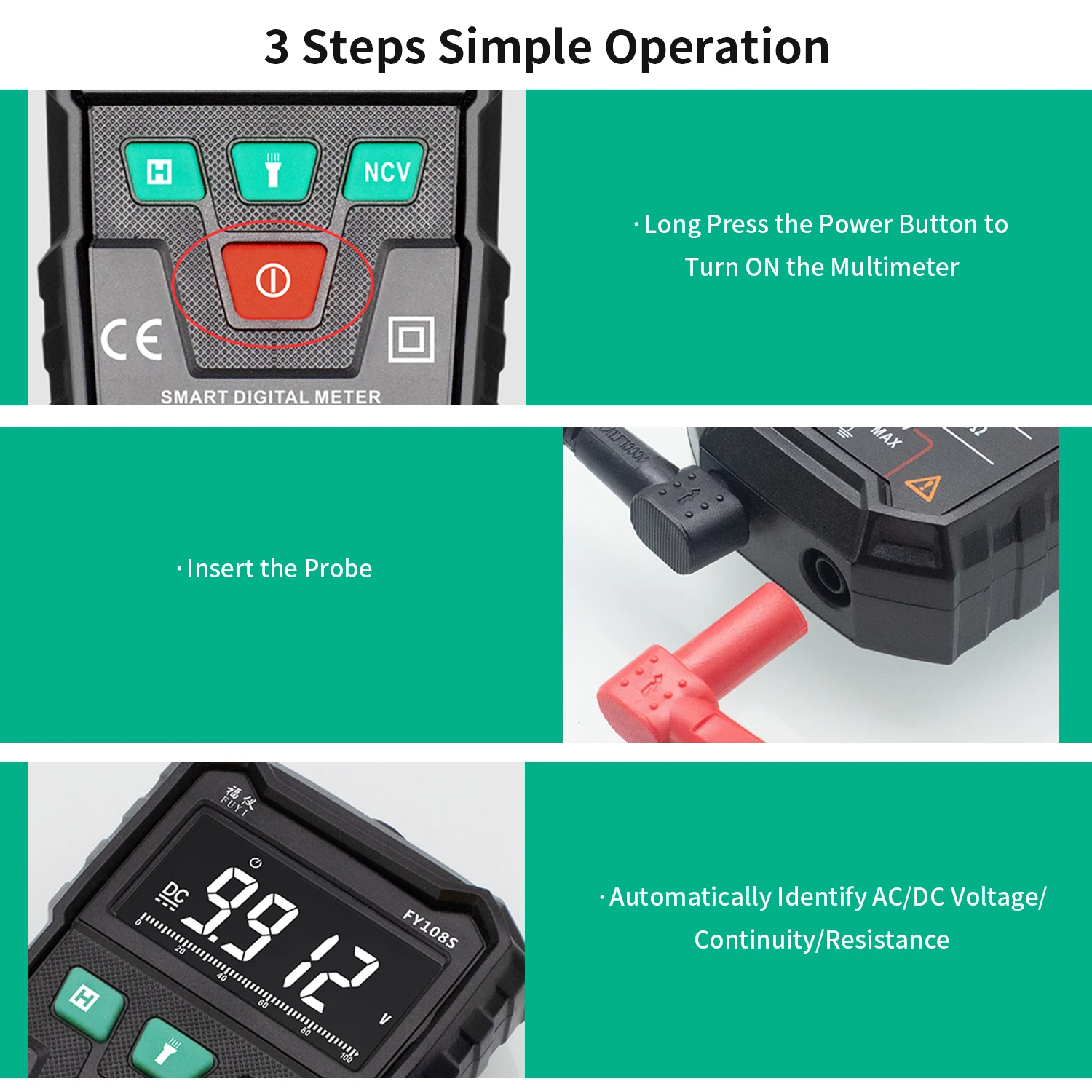 Размер ладони: мультиметр такой же маленький, как размер ладони, очень портативный для использования в помещении и на улице.