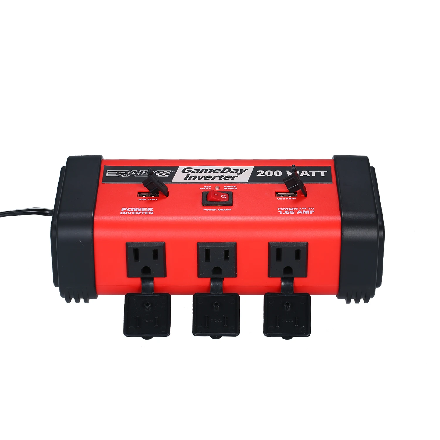 200 Вт инвертор высокой мощности --- поставляется с профессиональной прикуривателем. Обеспечивает 200 ватт непрерывной мощности, преобразует 12 В постоянного тока батареи в стандартный 110 В переменного тока.