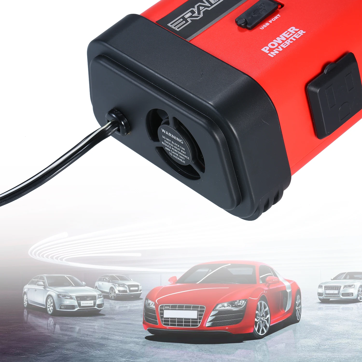 Безопасный и надежный --- Встроенные Сменные предохранители, 1 охлаждающий вентилятор. Безопасная конструкция зарядки обеспечивает защиту для вас и вашего устройства, этот инвертор питания с перенапряжением, перегрузкой, перегрузкой, перенапряжением, перегревом и защитой от короткого замыкания, низкий уровень заряда батареи и автоматическое отключение. (Примечание: Это инструмент преобразователя мощности, а не внешний аккумулятор.)