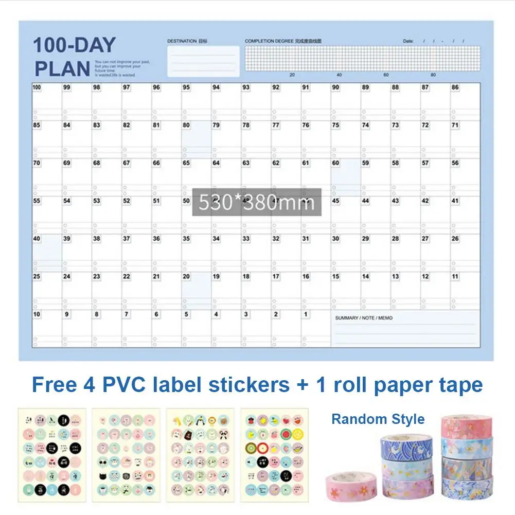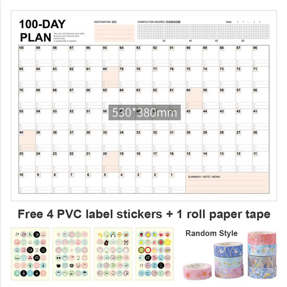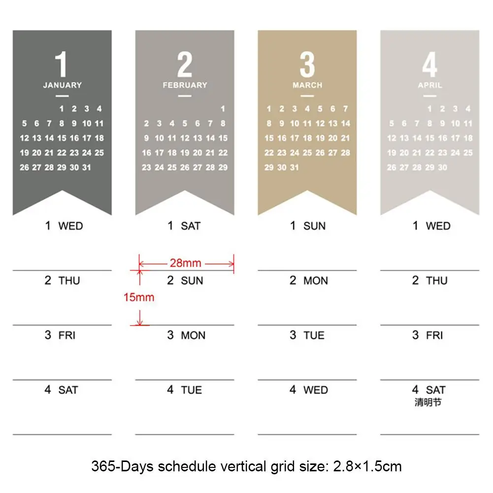 1. Материал: Календарь изготовлен из высококачественной белой крафт-бумаги с четким принтом и длительным использованием.; 4 ПВХ наклейки, 1 рулон горячего тиснения бумажной ленты (Случайно отправлено)