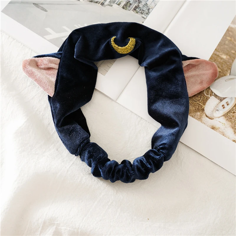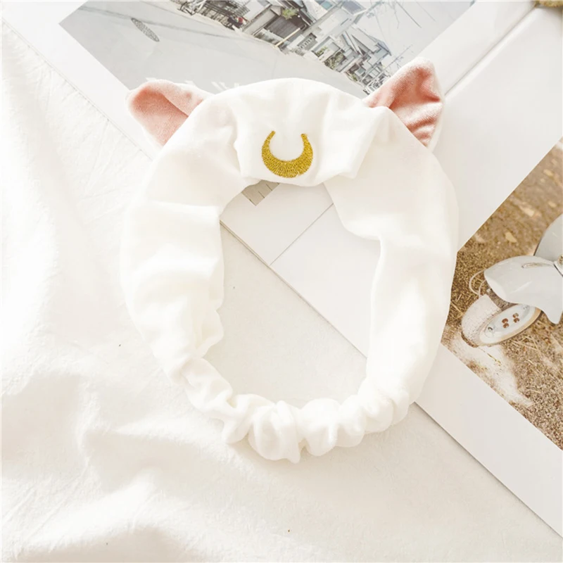 Мультяшная Луна кошачьи уши мягкая эластичная повязка на голову для мытья лица макияж лента для волос при занятиях йогой