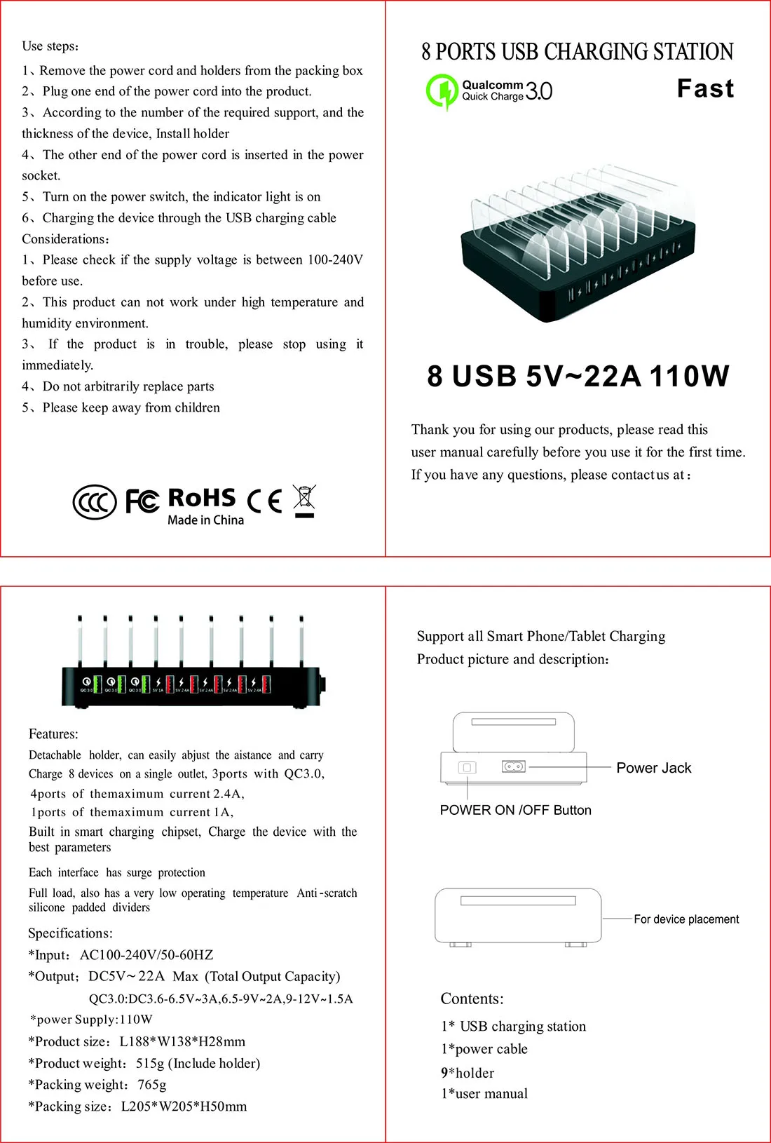 110 Вт 8 портов Мульти USB зарядное устройство QC 3,0 2.4A для IPhone X 11 Ipad Быстрая зарядка USB Настольная станция Док-станция кронштейн для Samsung S10 Прямая поставка оптовая продажа