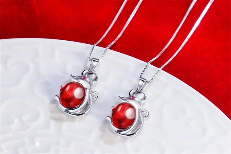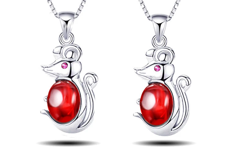 925 Настоящее серебро 2019 женское ожерелье мышь из зодиака крыса оникс красного цвета с украшением в виде кристаллов украшения на шею подвески заявление ожерелье