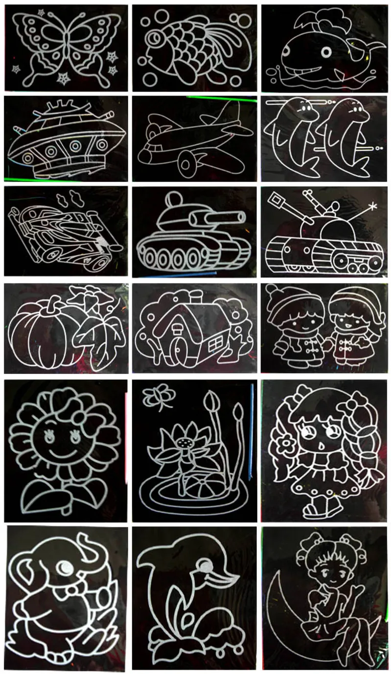 - Карта имеет две стороны. Одна сторона для выскабливания, другая сторона для раскрашивания. Развитие навыков рисования у вашего ребенка
