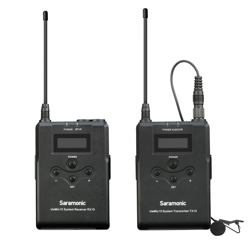 Saramonic UwMic15 RX15-это встроенный беспроводной приемник с камерой. Он оснащен простым в считывании ЖК-дисплеем и инфракрасной синхронизацией между передатчиком и приемником.
