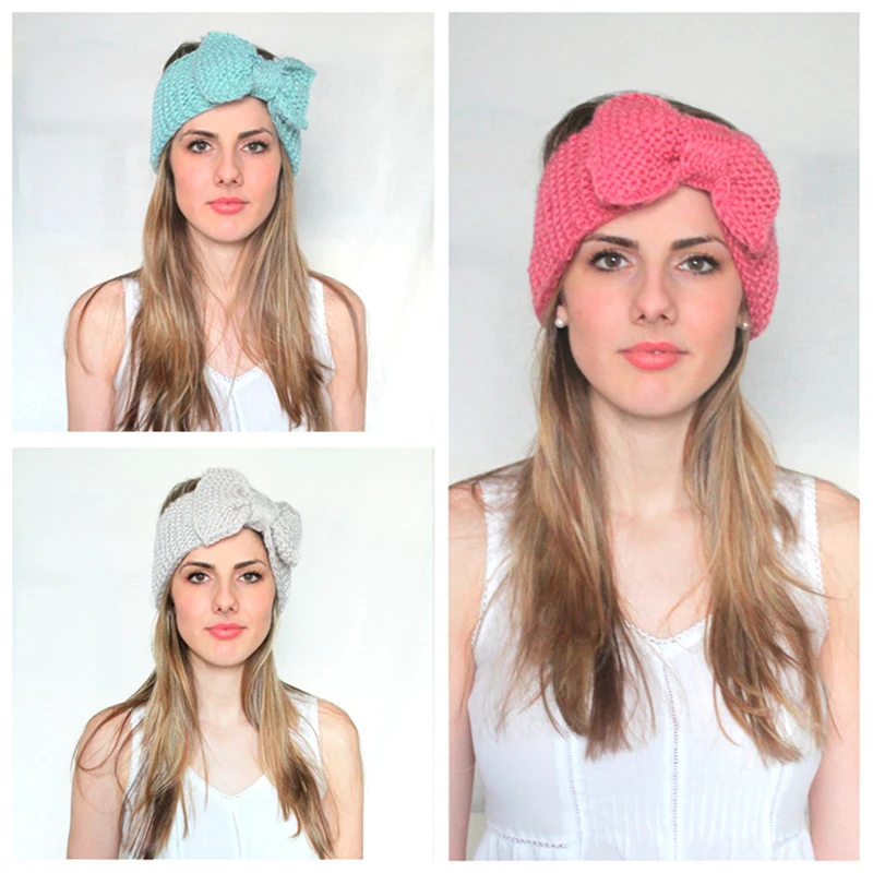 Большой бантик, вязаная повязка на голову, зимняя теплая вязаная повязка на голову ручной работы