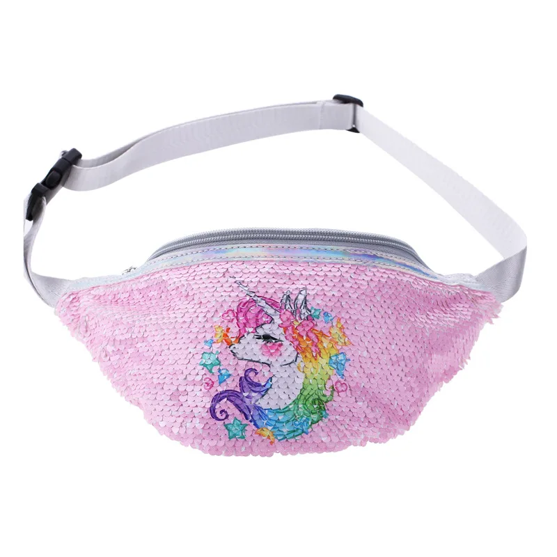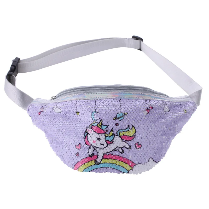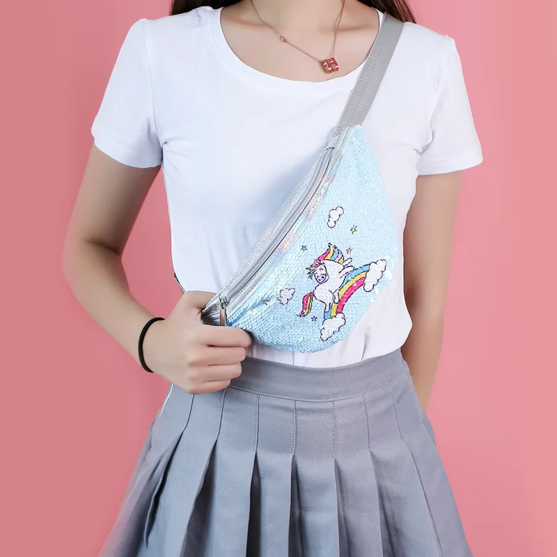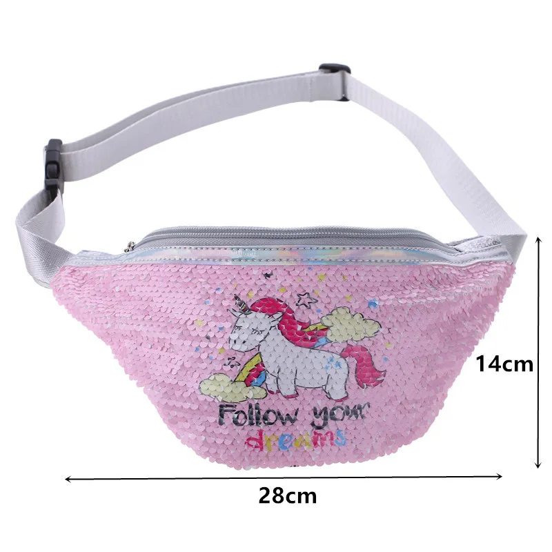 Название: поясная сумка с единорогом Материал: блесток Размер: около 28*14 см Использование: можно положить в монеты, ключи, карты, деньги, телефон Для людей: женщины, девочки, дамы, дети, дети Посылка: 1 шт/opp мешок