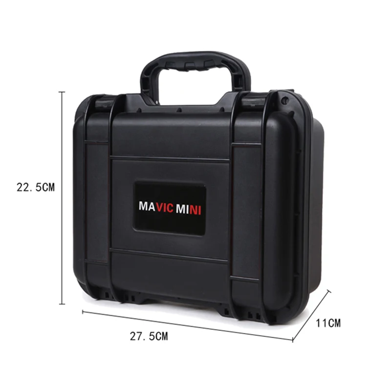 Водонепроницаемый ящик для хранения DJI Mavic Mini Drone, Дорожный Чехол для хранения, Жесткий Чехол, аксессуар Особенности: 1. Эффективно облегчает воздействие внешних сил, водонепроницаемый жесткий корпус безопасен, а корпус эффективно защищен, 2. Внутренняя подкладка изготовлена из высококачественных тканей для двойной защиты тела, 3. Прочный и не легко царапается, тщательная защита, удобная ручка. Описание: Материал: ЭВА + XPE Подходящие модели: для Mavic Mini Цвет: черный Вес: около 1130 г Размер продукта: 22,5*27,5*11 см Упаковочный лист: Защитная Водонепроницаемая коробка x 1 Примечание: Дрон и все аксессуары в коробке не включены.