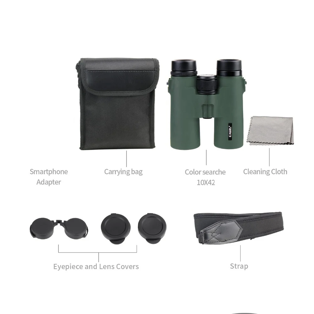 Бинокль высокого качества, визуальный зум, спортивный наглазник для охоты, бинокль, телескоп, мини фокус, длина, профессиональная бинокулярная линза Бинокль 10X42: Технические характеристики: Увеличение мощности: 10x Диаметр объектива: 42 мм Слайдер для окуляра: 21 мм Призма: K9 Объективы Покрытие: FMC Диаметр выходного зрачка: 5 мм Расстояние выходного зрачка:. 18 мм Вид поля: 331ft / 1000yds Длина Мини Фокуса: 5 м/16,4 фута Расстояние вокруг глаз: 56 мм ~ 74 мм Система наглазника: поворот вверх Вес изделия: 536 г Размер продукта: 154x126x52 Размер подарочной коробки: 190x105x220мм Бренд Proflie: Color searcher-это промышленный бинокль для яхты Vision King leadervsе для высокоэффективной спортивной оптики более 10 лет. Руководство по поиску цветов заключается в том, чтобы обеспечить Высочайшее качество, наиболее надежный продукт спортивной оптики и самое доступное обслуживание клиентов на рынке. Монокулярный бинокль visionkingbinokle для бинокулярных целей, в том числе для изучения природы, наглазников для охоты в бинокль, бинокль для охоты на рыбалку, птиц и обсерватории. В помещении, бинокль для huntingThe Eyecups для бинокулярных монокуляров/бинокуляров binoklи приблизит зрителей к действию в быстродвижущихся видах спорта или изобразительных искусствах в театрах и концертах. Упаковочный лист: 1x бинокль 1x адаптер для смартфона 1x переносной чехол 1 окуляр и крышка объектива 1x Салфетка для уборки 1x ремень