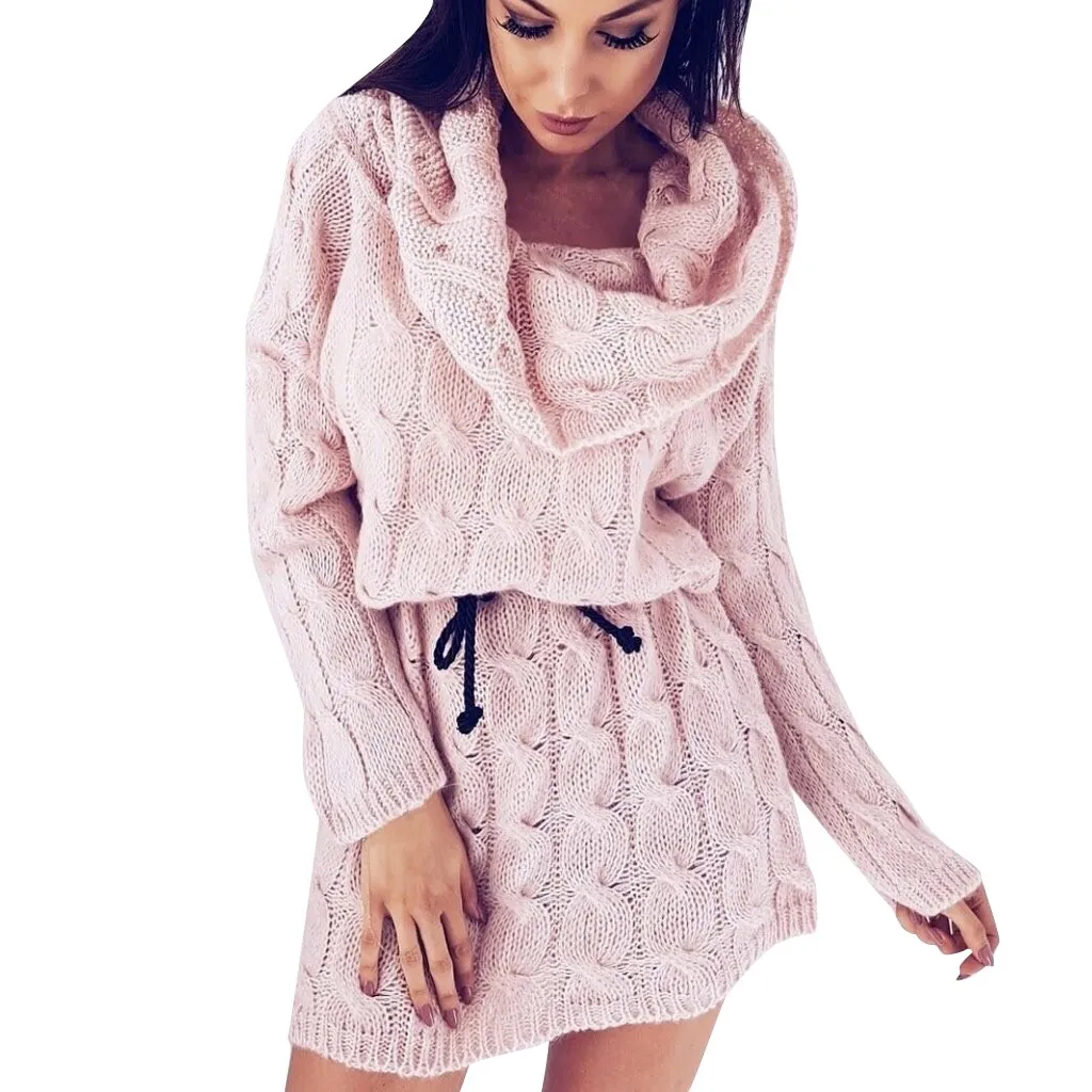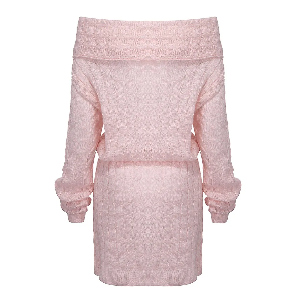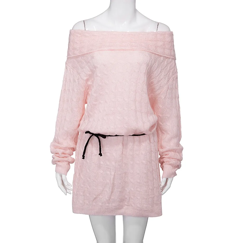 Womne/модный вязаный свитер с открытыми плечами; платье с длинными рукавами