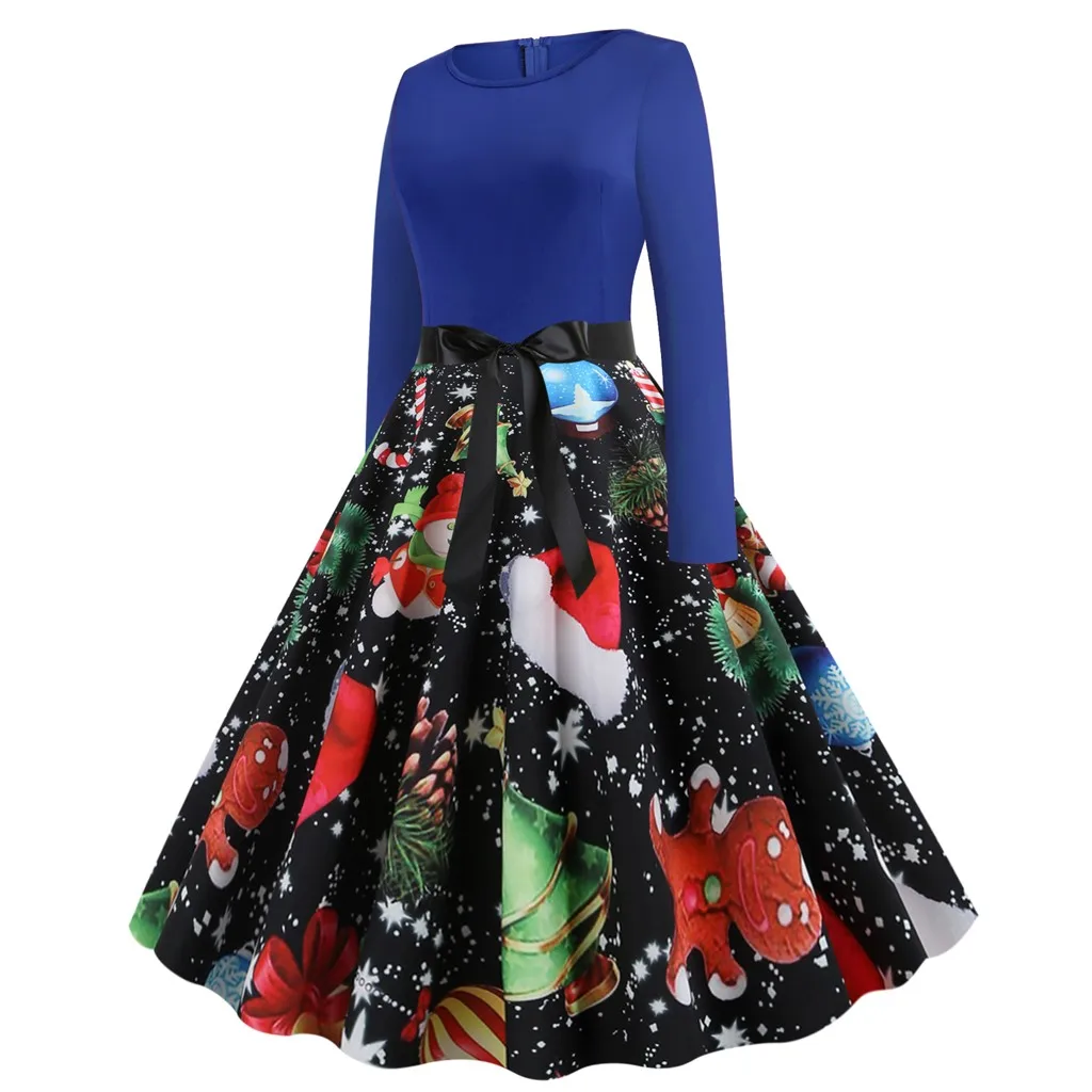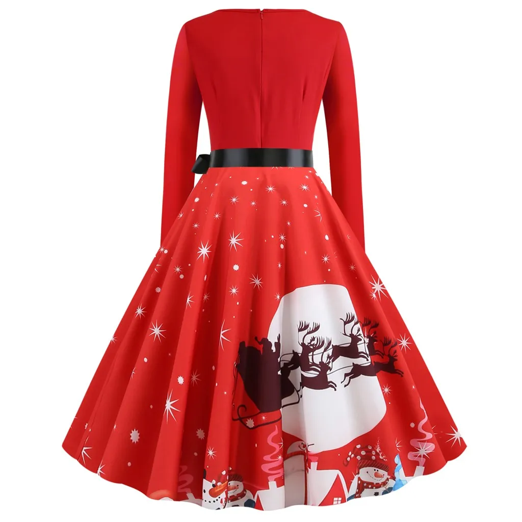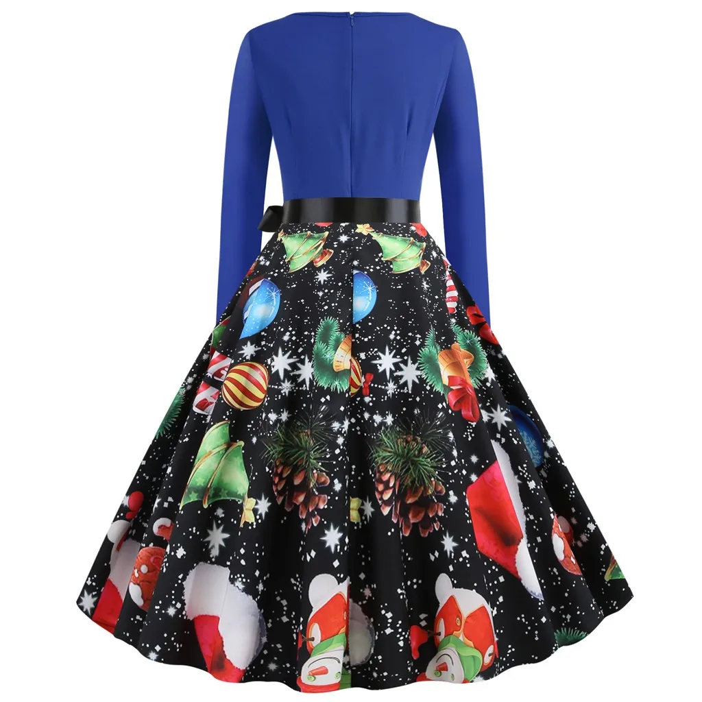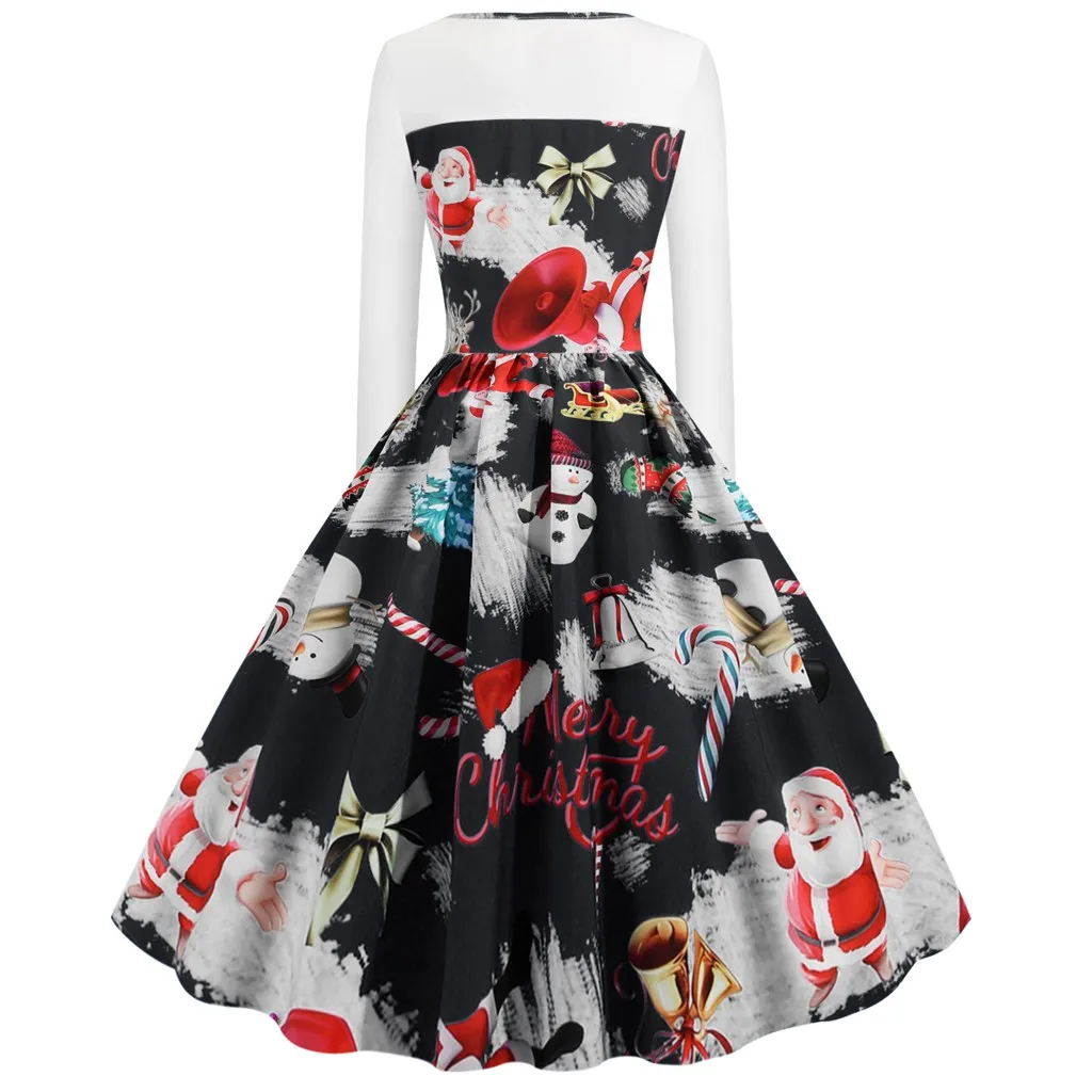 Круглый вырез с узкой оборкой, длинный рукав, корсет Винтажная строчка с рождественским принтом плюс Европейский королевский стиль дает вам ретро и элегантный вид; fit & расклешенный силуэт подчеркивает Вашу фигуру Винтажный стиль Хепберн 1950 s идеально подходит для праздничной одеждыЭто просто потрясающе! Мы влюблены в это рождественское платье. Подходит для мирного разрешения проблемы