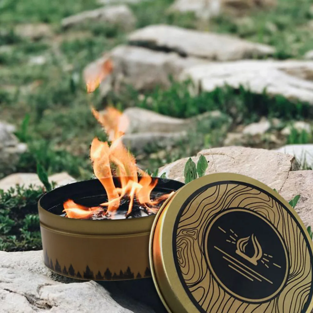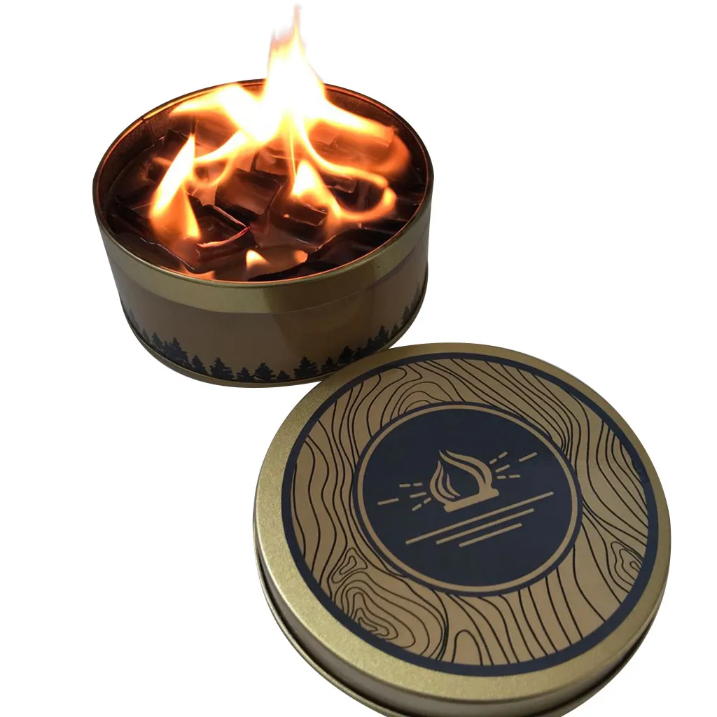 Портативный костёр имеет экологически чистые и переработанные бумажные брикеты в пределах соевого воска.